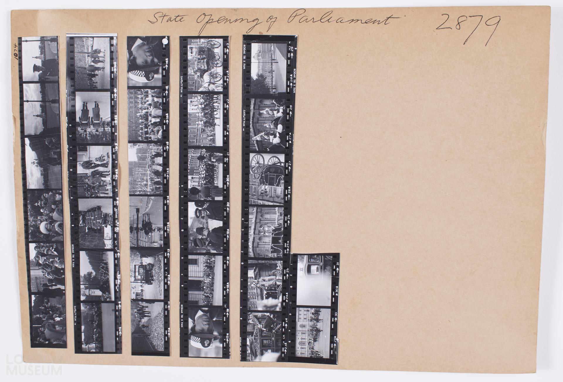 State Opening of Parliament, 10/1974: Street scenes; crowds outside Buckingham Palace; police; the State Coach and parade. contacts included are numbered from film on 35mm: 0-31. Handwritten on reverse: '2633 Sheet 3'.