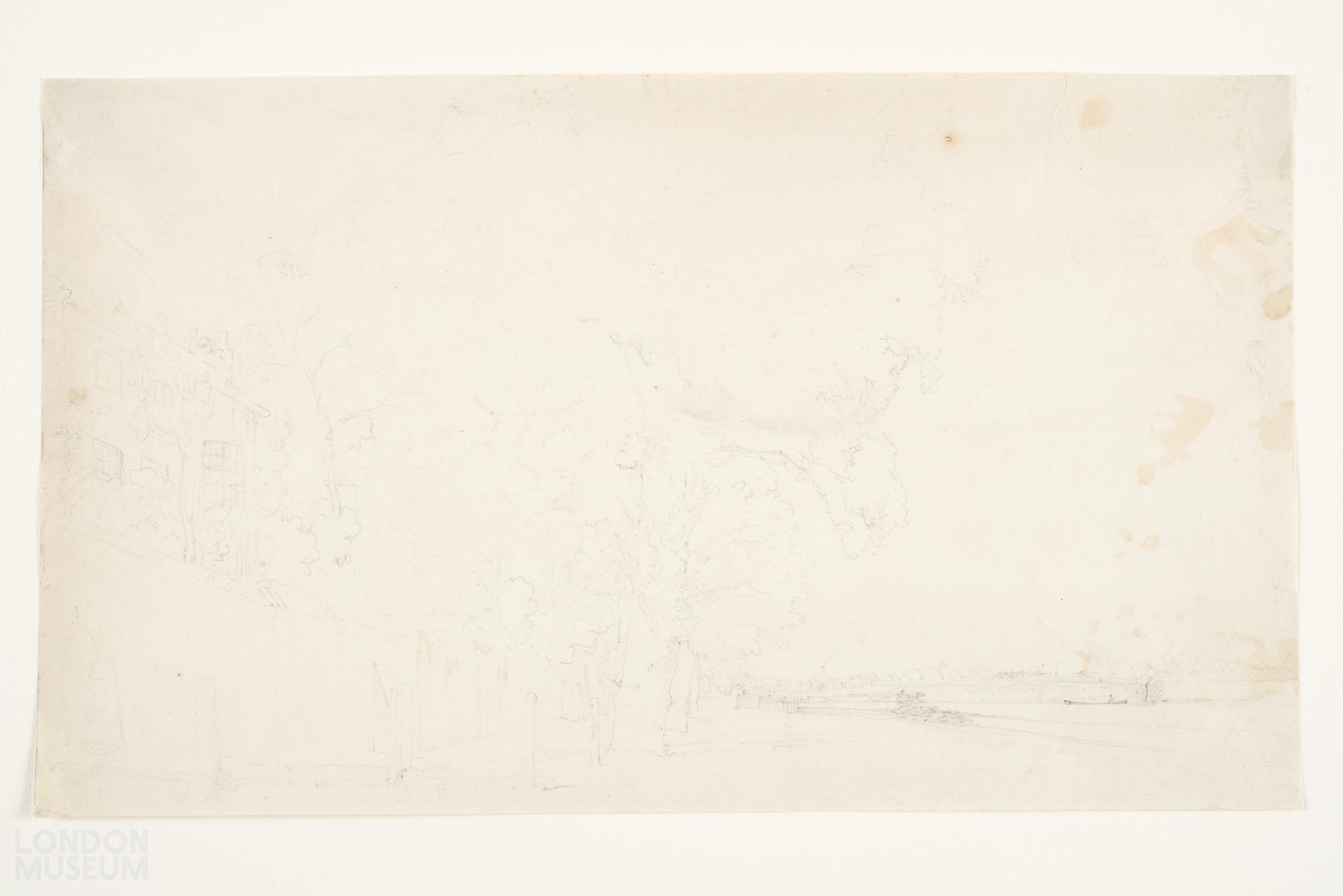 Sketch of the river-front at [Putney]. Drawn by the Camera Lucida.