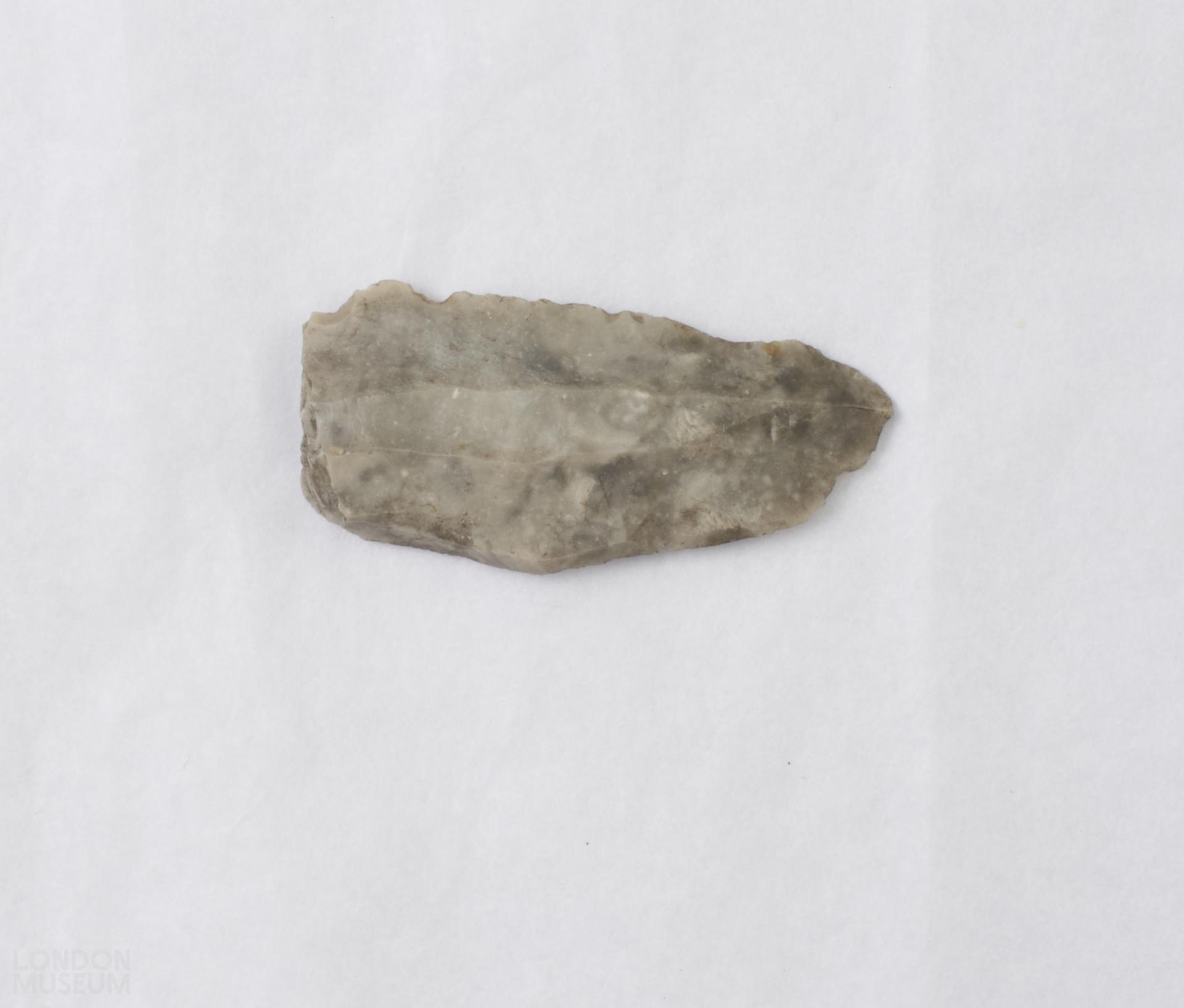 Grey flint blade with double ridge.