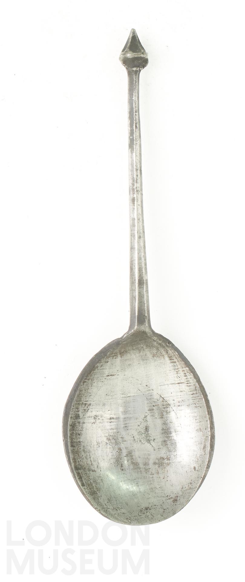 A pewter spoon with diamond point knop, dated to the 15th century.