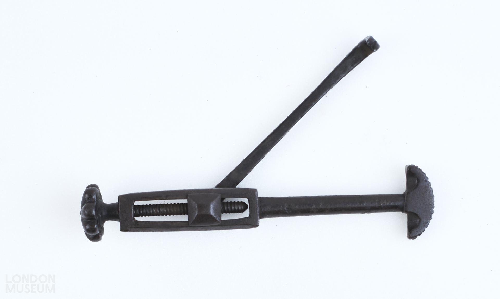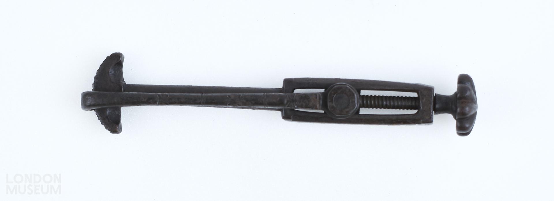 Single-ended pelican with adjustable screw mechanism, used for tooth extraction, and dated to the late 17th or early 18th century.
