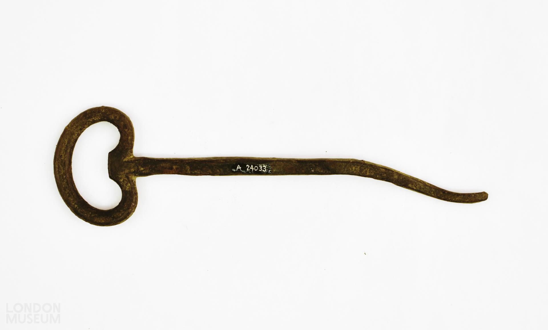 Iron key from the 16th century, found at Greycoat Street, Westminster, London.