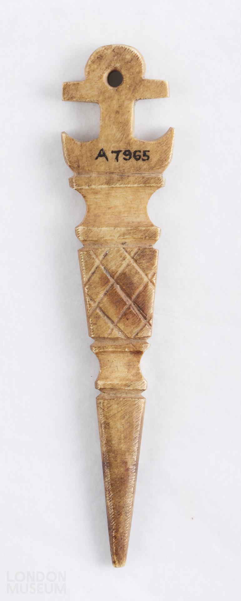Bone implement, possibly an awl or piercer, or other toilet implement.