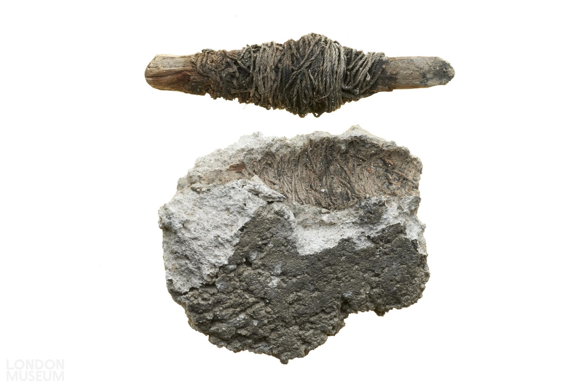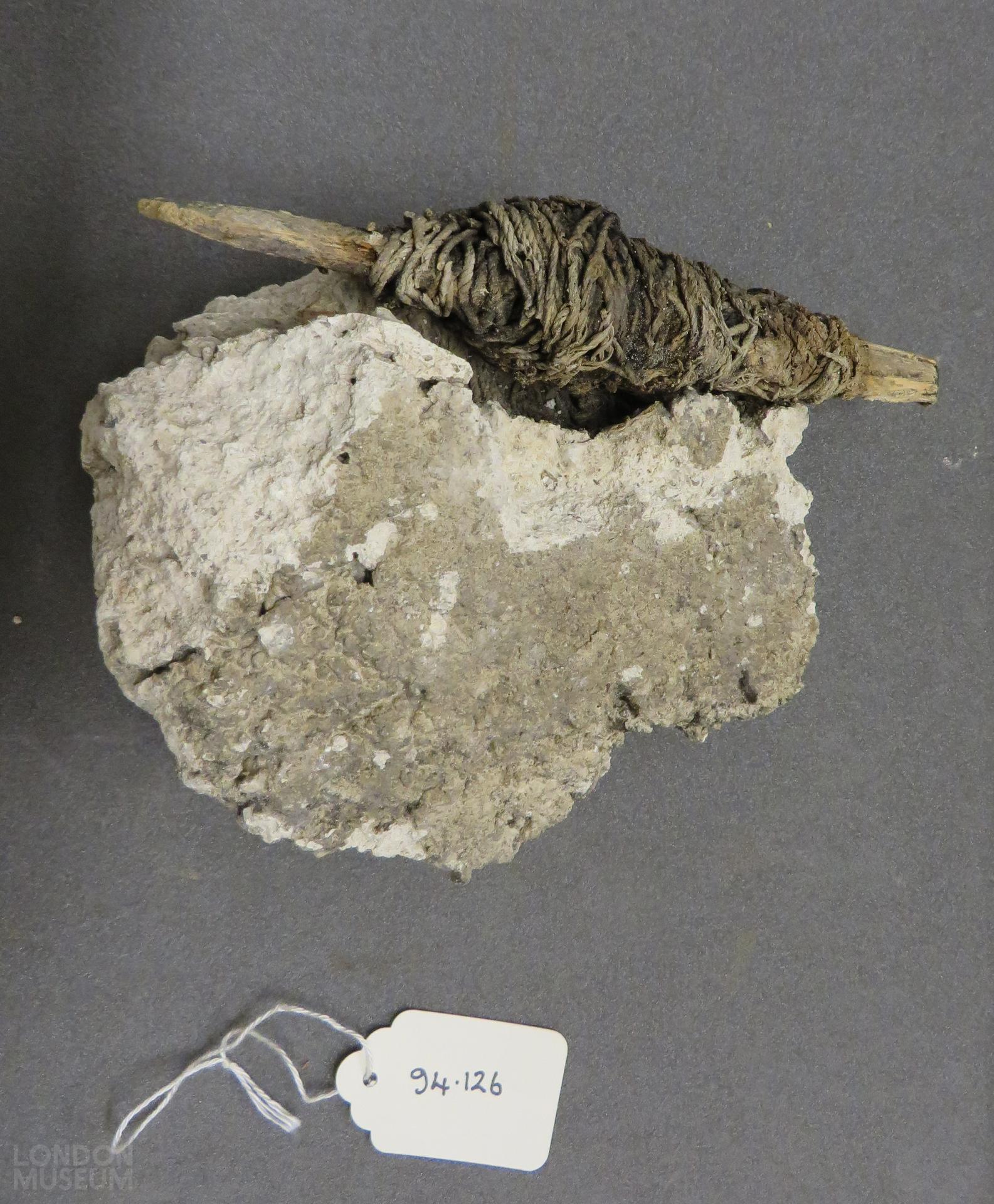 This is a plumb line. It is thought that perhaps this plumb line was dropped into the mortar during the building of the Church of St Lawrence Jewry.