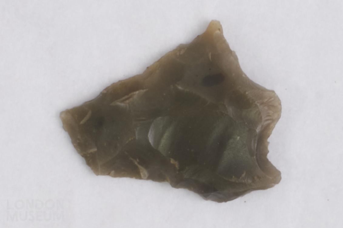 Flint flake, possibly an unfinished barbed and tanged arrowhead.