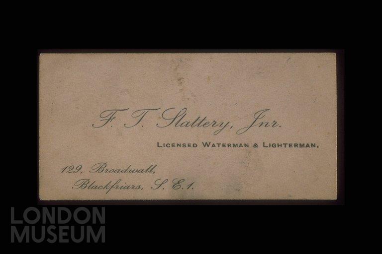 Trade card of F.T. Slattery Junr, Waterman and Lighterman.