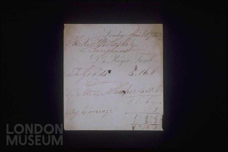 Invoice from Roger Lamb, wine merchant, to Rev W. Hasker.