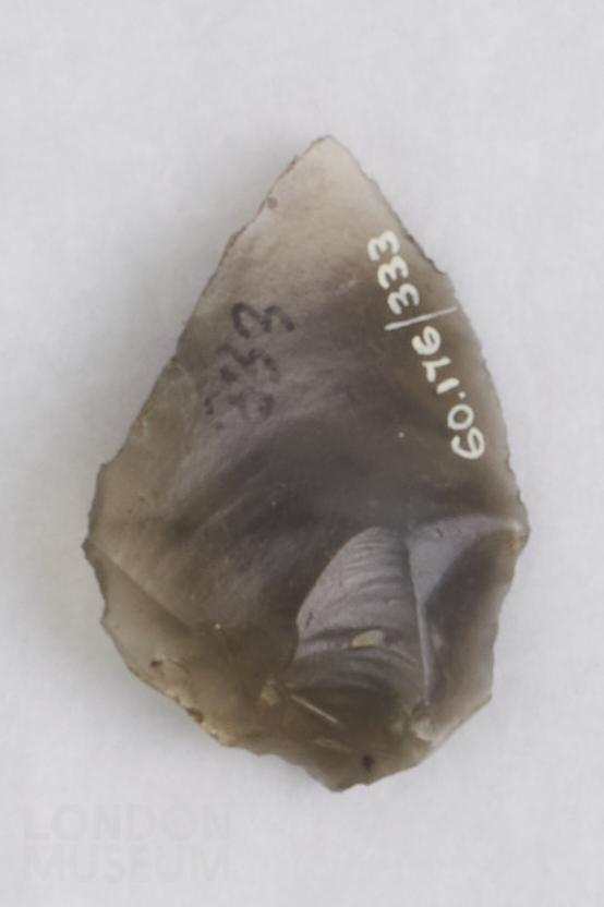 Flint flake showing a similarity to a leaf-shaped arrowhead.