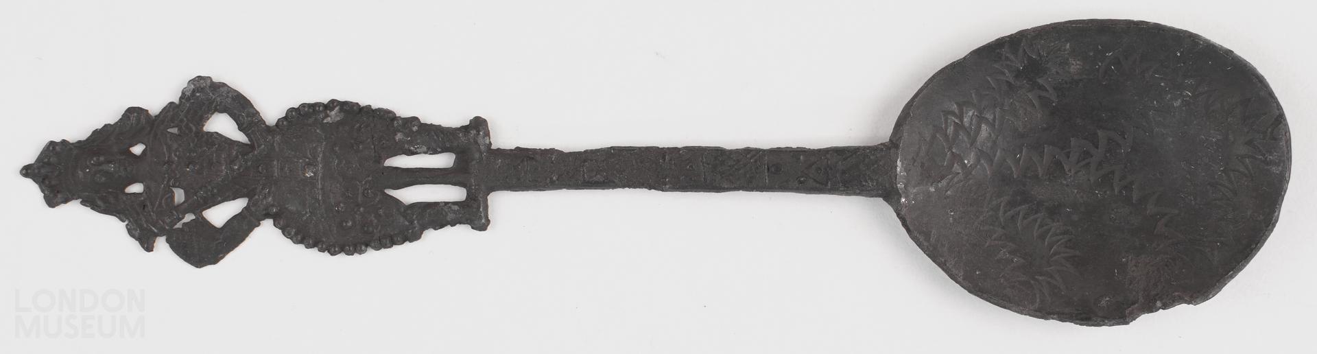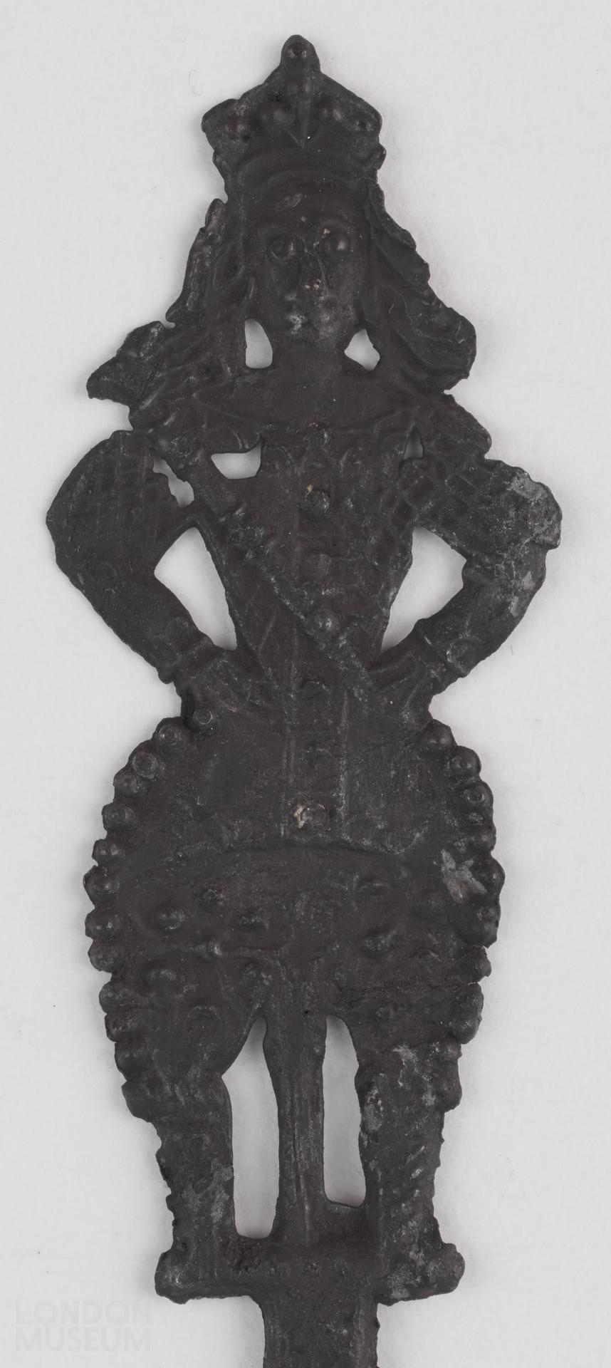 This spoon is too fragile for use so was presumably designed as cheap souvenir to commemorate a coronation; probably Charles II ( 23rd April 1661). The earliest known full-sized functional spoons with relief-cast Royal portraits are those with the conjoined heads of William and Mary which presumbably date from their coronation in 1688.