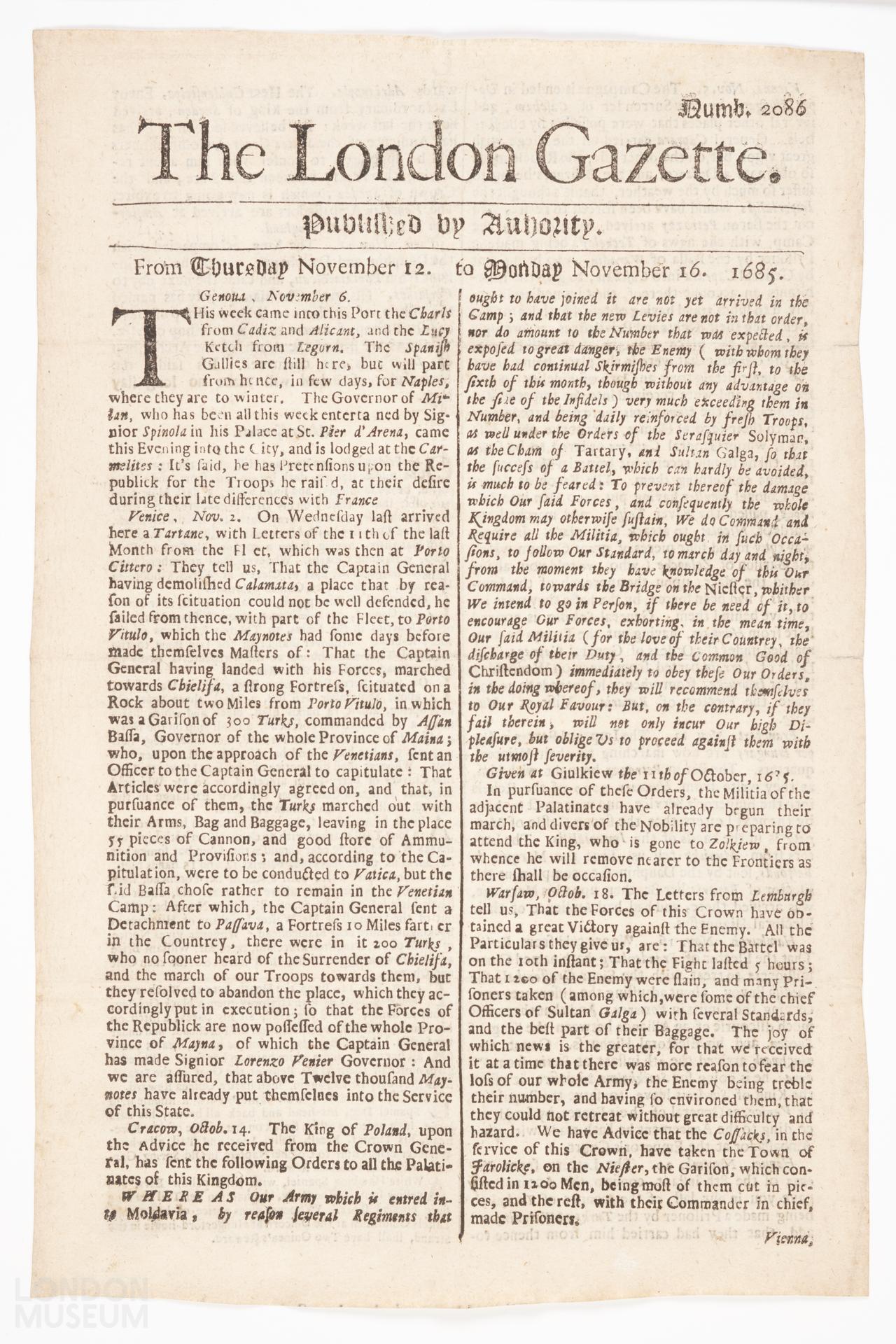 The London Gazette was first published in November 1665 as the Oxford Gazette while the court of Charles II was residing in Oxford due to fear of the London plague. The first London edition of the paper was published in 5 February 1666.