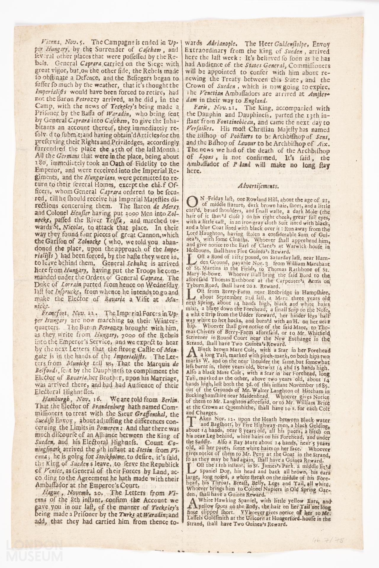 Published by ‘authority’ the Gazette provided an official record of government affairs and also carried official notices, such as Royal Proclamations, official a, Granting appointments, Royal assent to Bills of Parliament, military honours and personal and corporate insolvency. The focus of this edition also reflects public interest in international affairs and conflicts within Europe.