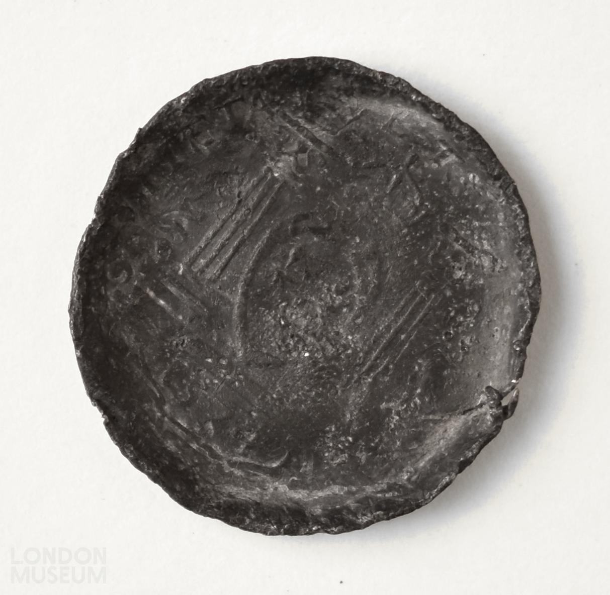 An Elizabethan medalet, probably issued by a partisan of Mary Queen of Scots. The reverse resembles a medal of Charles IX of France. The medalet may have been converted into a toy dish.