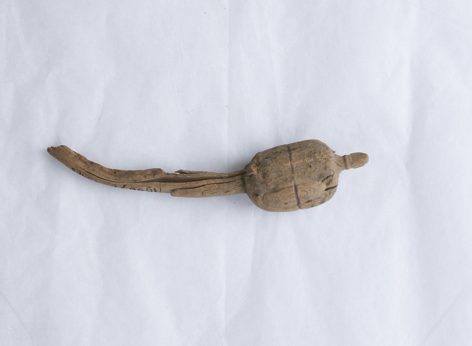 Wood fragment, possibly from a spindle.