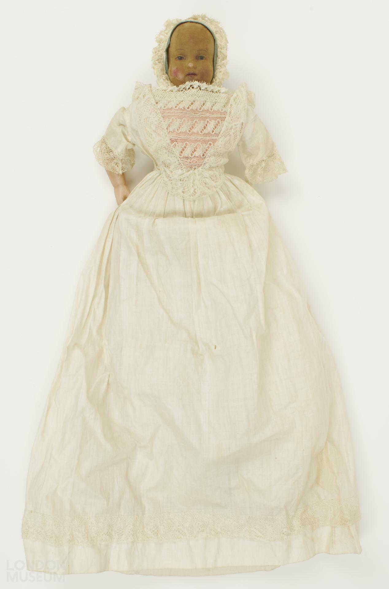 These cheaper types of dolls were thought to represent the Royal babies and were invented by Montanari. Purchased at the Great Exhibition and mentioned in the Crystal Palace report of the jury.