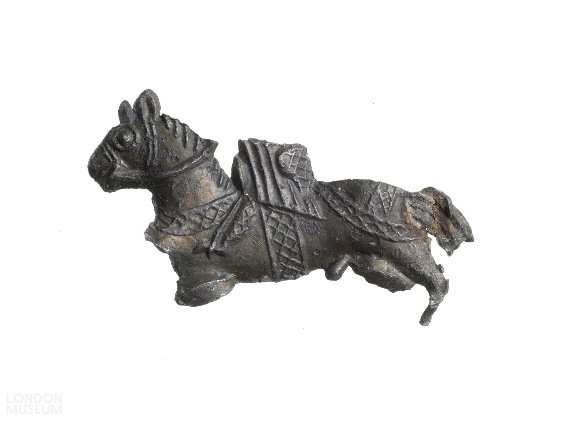 An incomplete badge showing a mounted rider on horseback. For an exact comparison see Spencer (1990) p. 108 and for others from this type see Spencer (1998) p. 299 & Forsyth (2005)