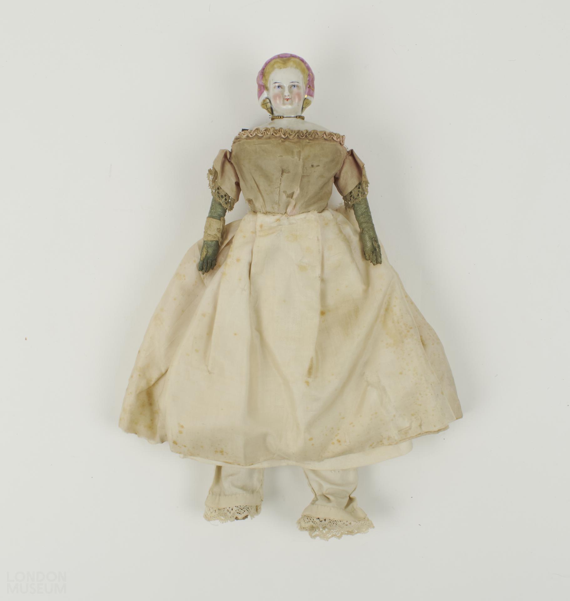 Portrait doll of Princess Alexandra, probably produced at the time of her marriage to the Prince of Wales, later Edward VII in 1863.
