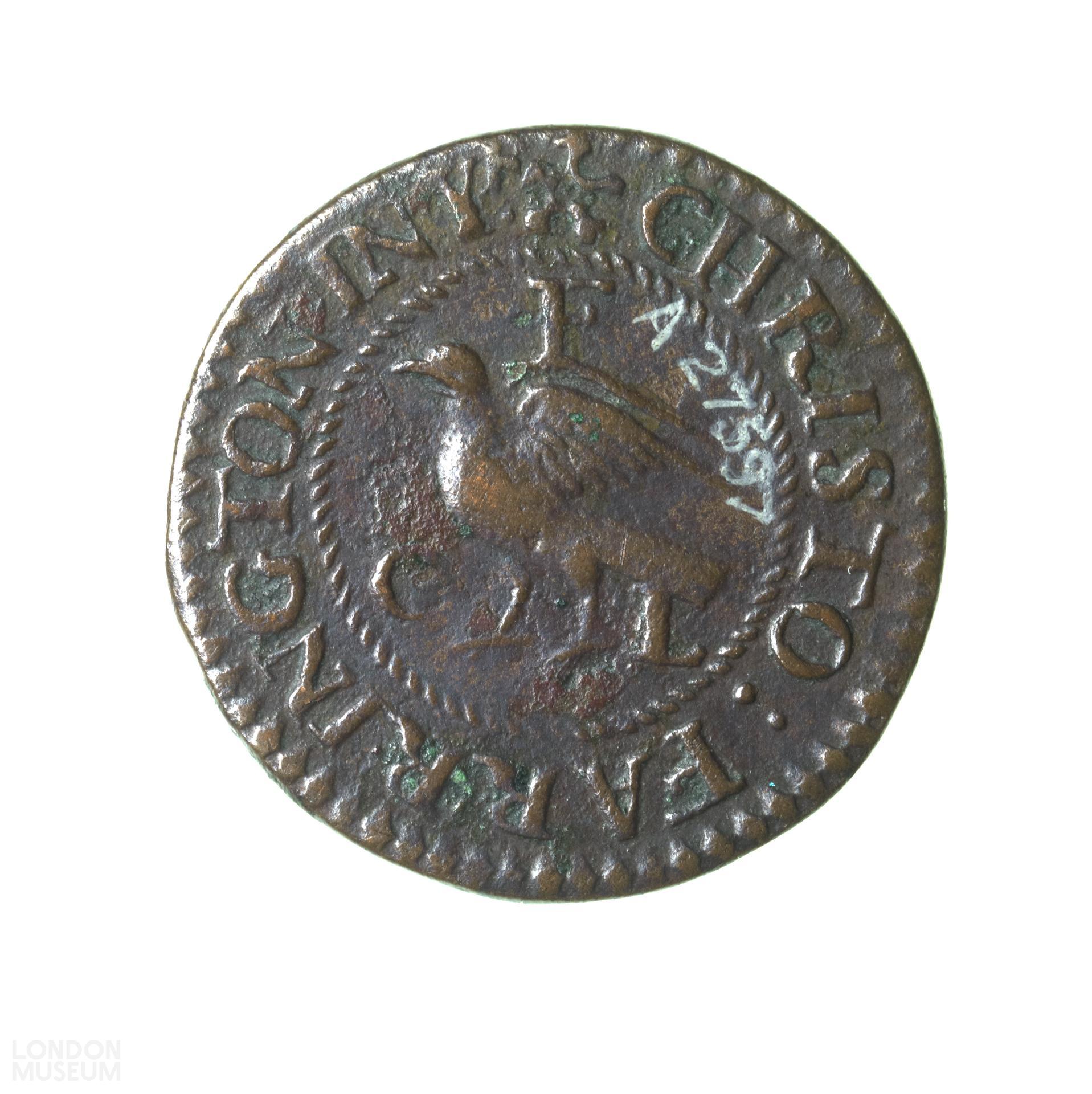 Christopher Farrington issued this trade token, worth a half penny, for his business in Southwark.