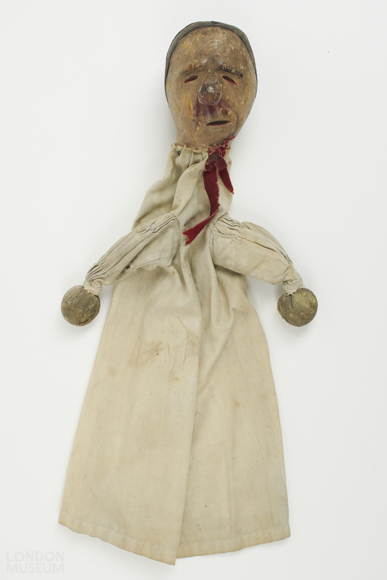 One item from a group of a Punch & Judy show: consisting of 13 puppets (each of the puppets is individualised by a different facial expression), drum, top hat in case, gallows, panpipes and drumstick (see related items).