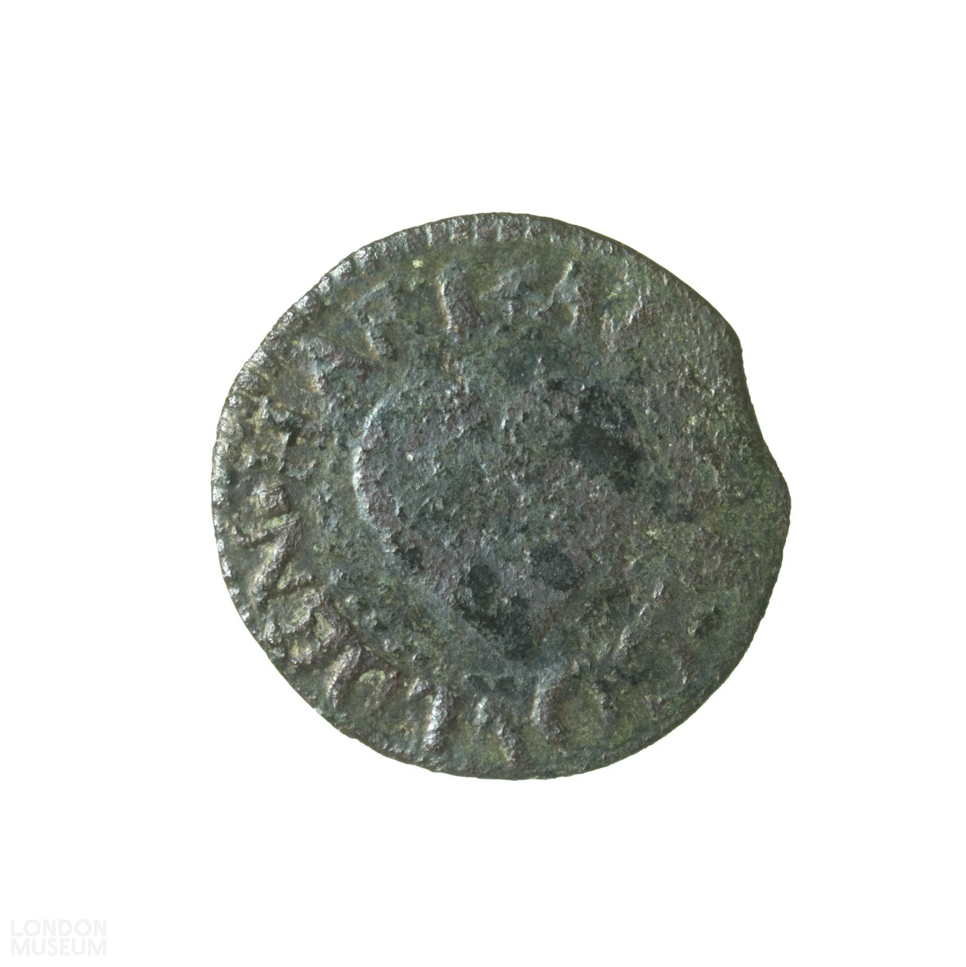 This trade token, worth a farthing, was issued for a business at the sign of the Golden Heart, in Tooley Street, Southwark.