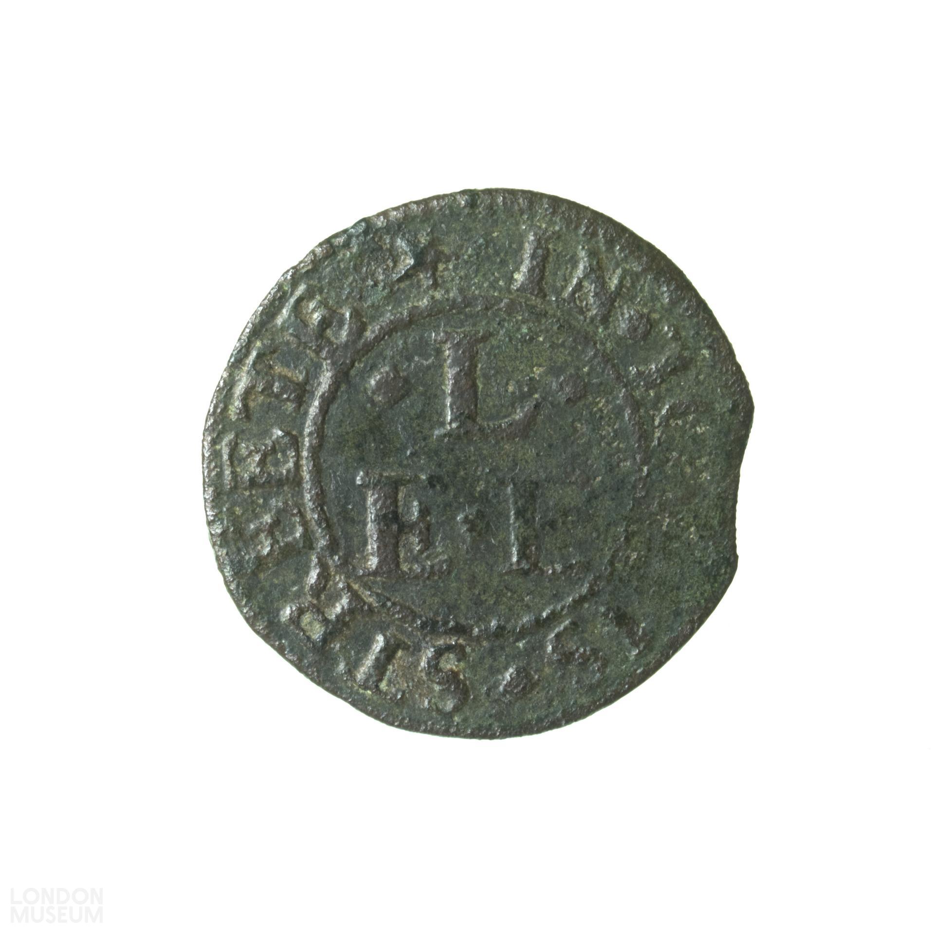 Boyne & Williamson (1891) reference Southwark number 448; Obv inscription: AT.THE.GOVLDEN.HART (around field, in Roman capitals) Device = A heart (in field); Rev inscription: IN.TOVLIS.STREETE (around field, in Roman capitals) Device = E.E.L. (triad of initials in Roman capitals, in field).