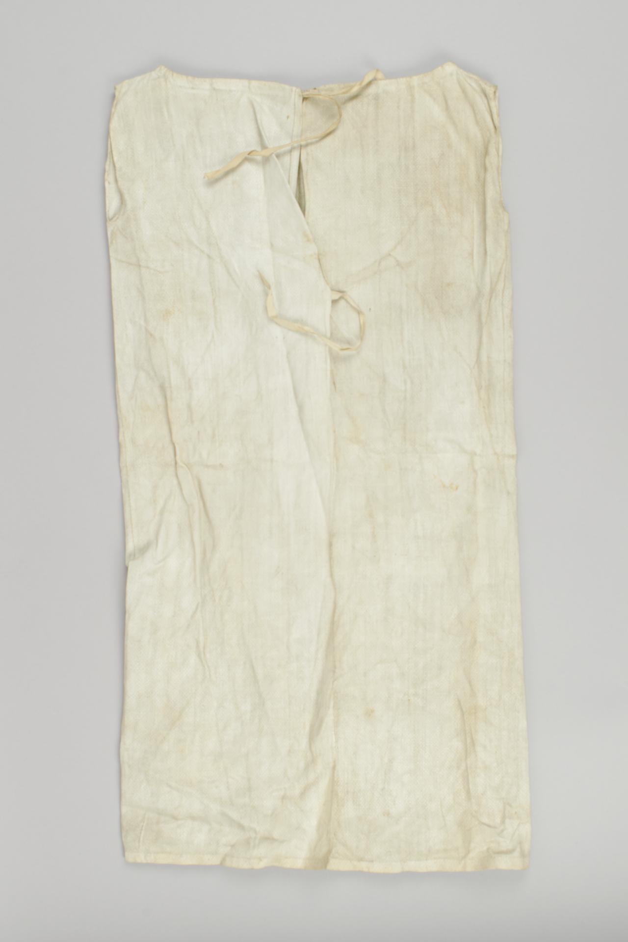 White cotton sleeveless chemise for large doll. With two ties to the back.