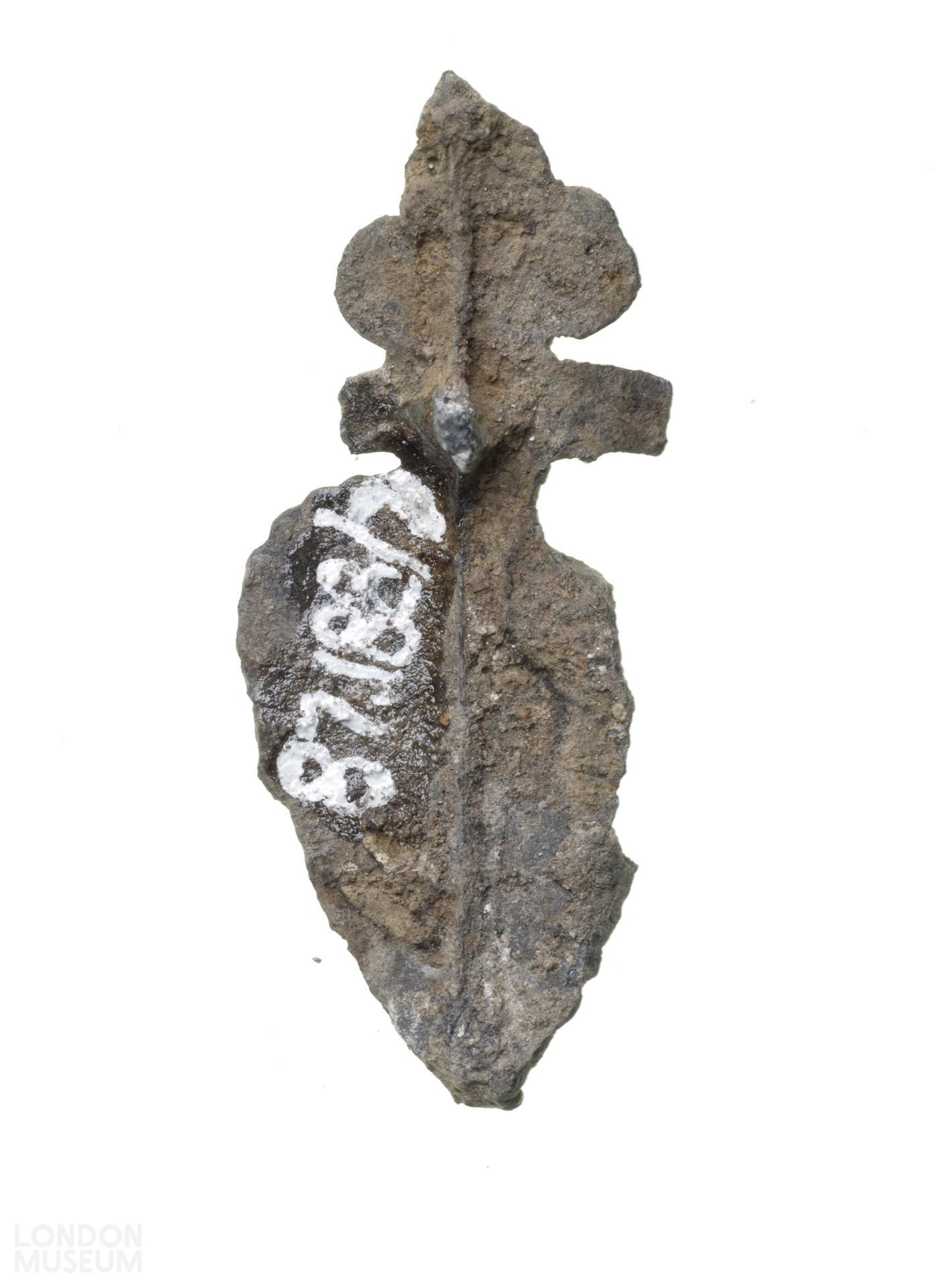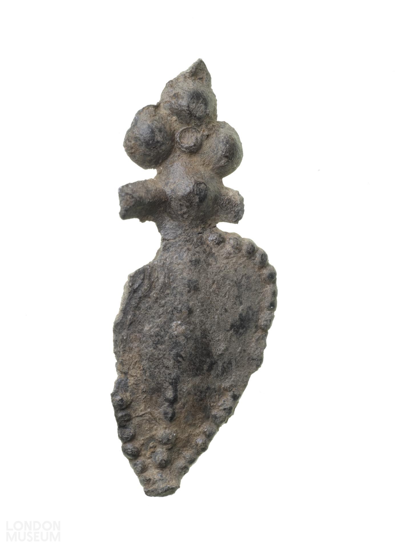 Secular badge in the shape of a crowned heart. Crowned and flowering hearts were common lovers' tokens in the medieval period.