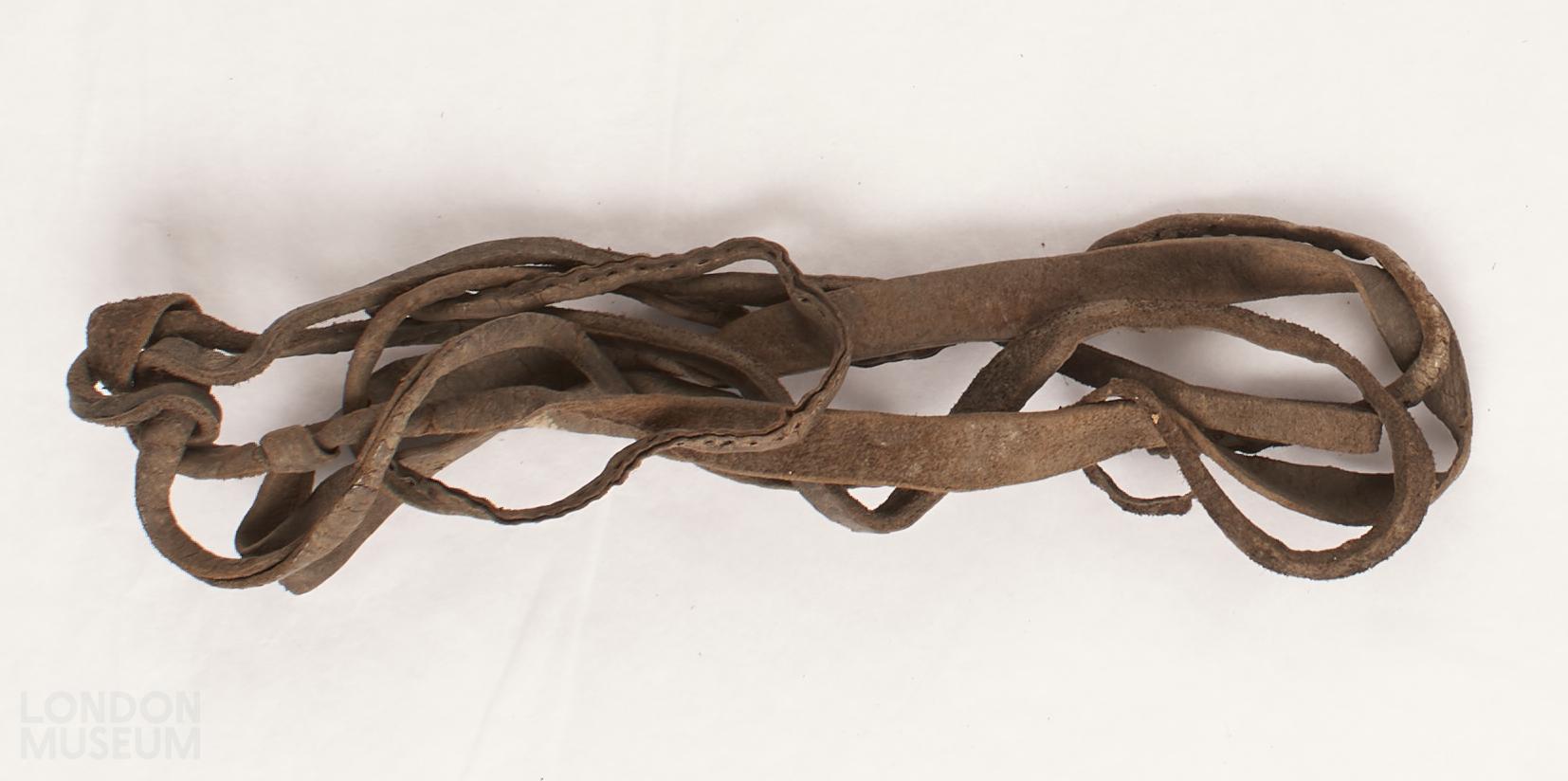 Bundle of leather straps. Faded brown in colour.