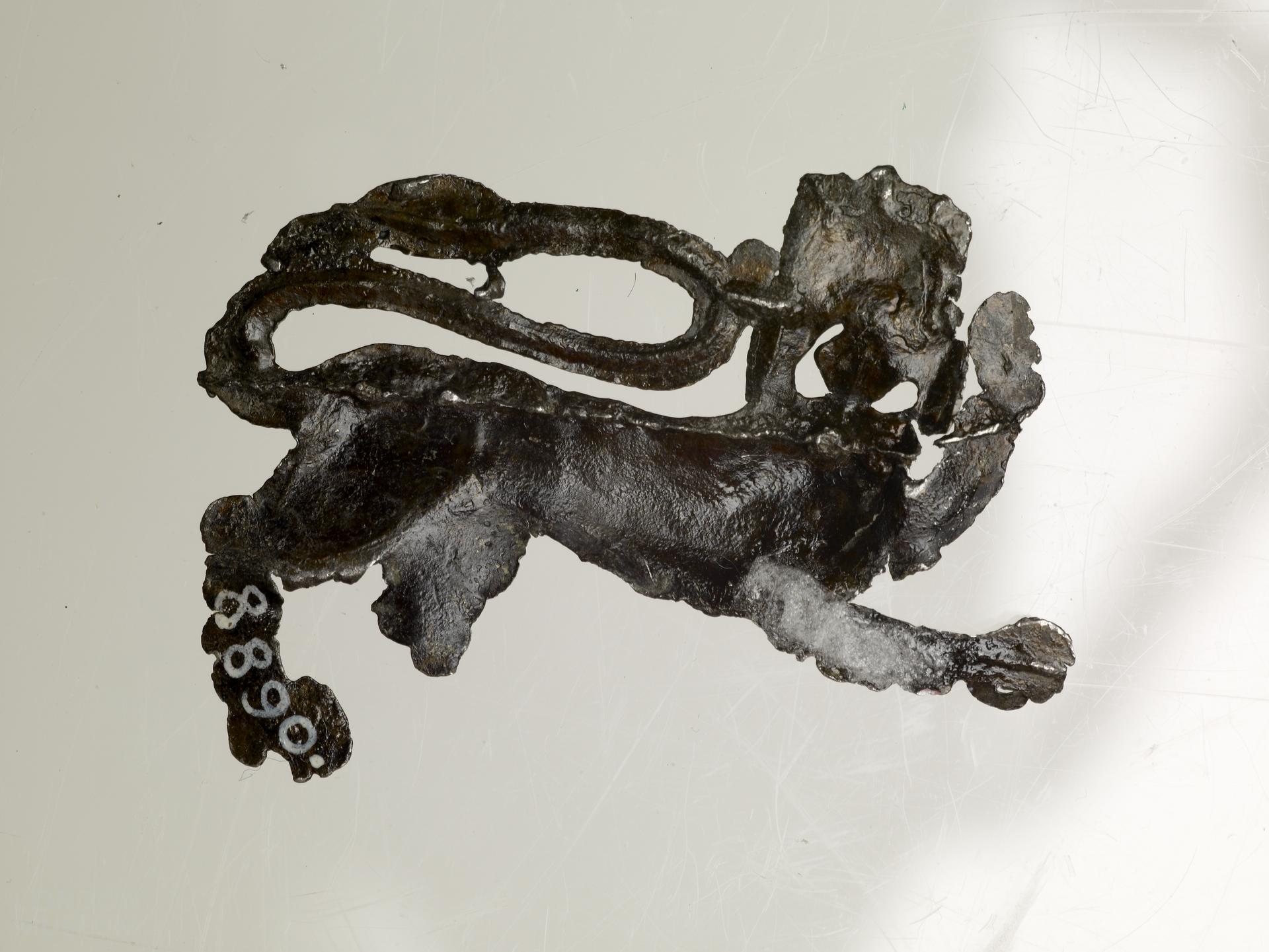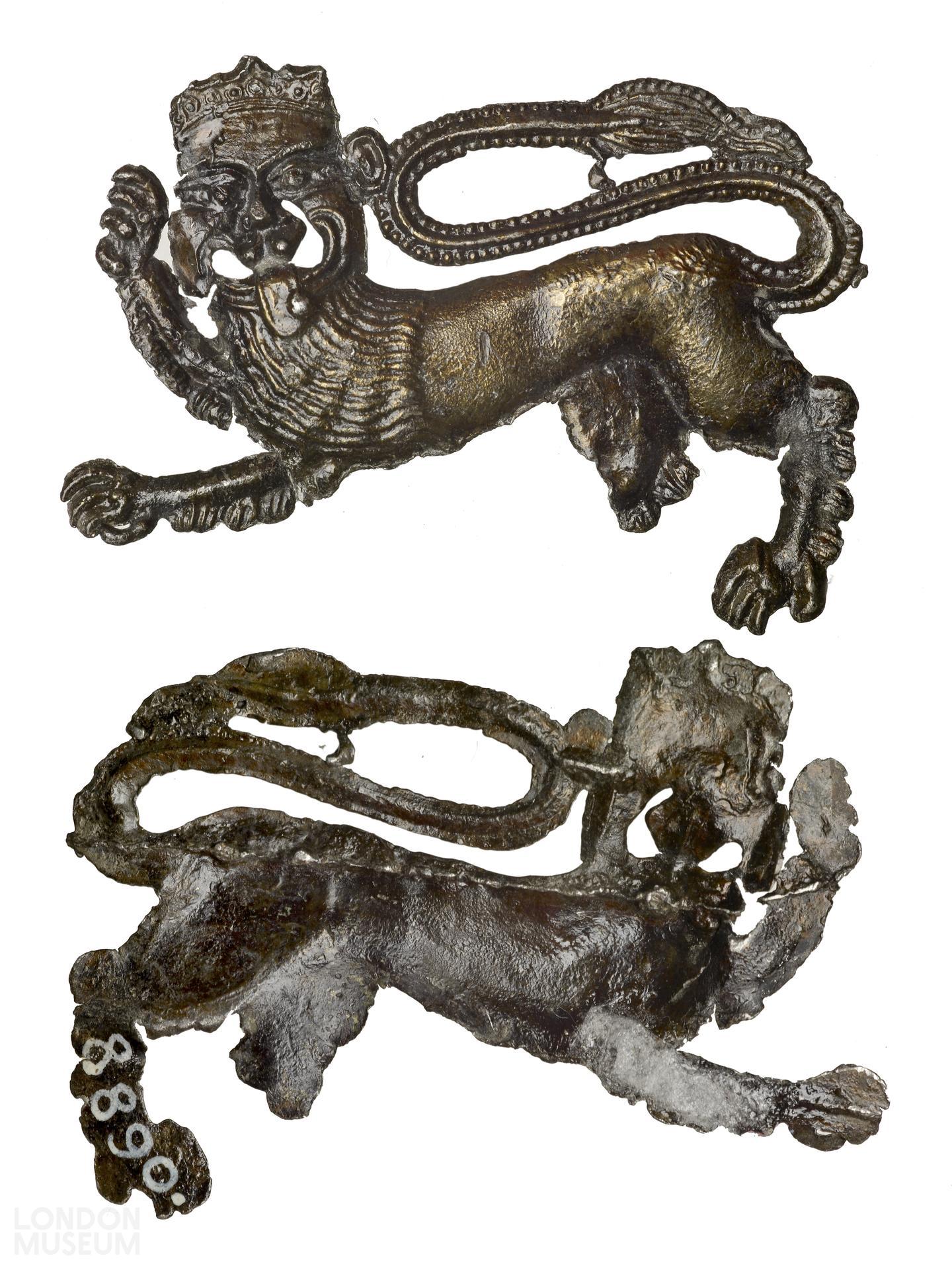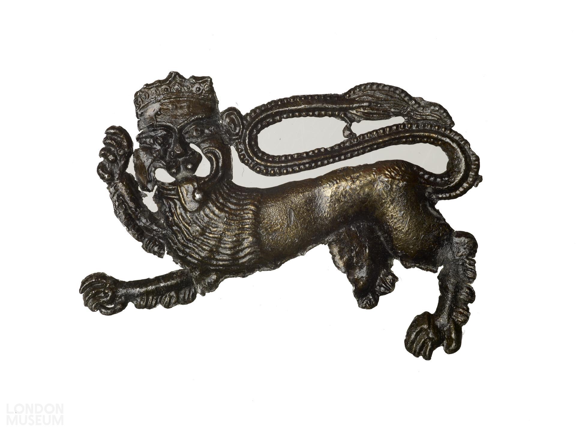 This badge probably symbolises the lion of England and was perhaps worn as a sign of patriotism in the Hundred Years War.