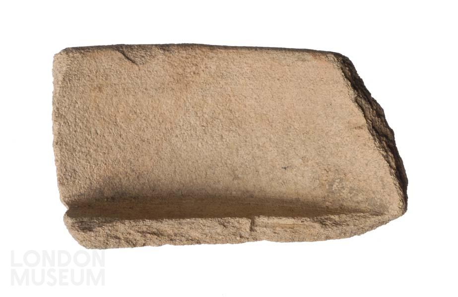 Incomplete probable type 11 ceramic open lamp, body fragment. Body with rounded rim and vertical wall. Verulamium/London region white ware (VRW).