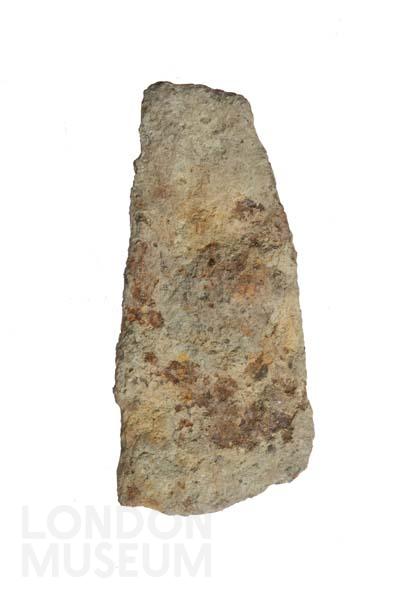 ncomplete; small fragment of blade from near the tip, with sloping back and straight cutting edge; possibly Manning Type 1.