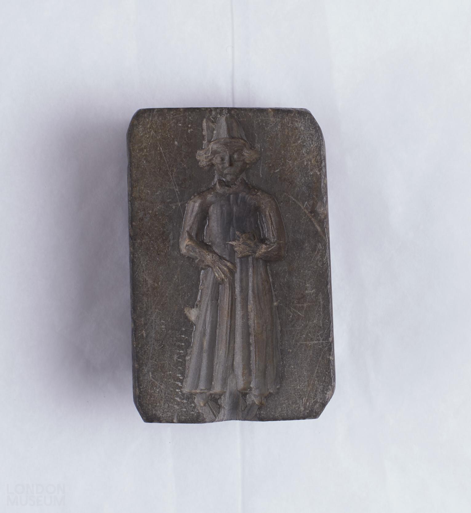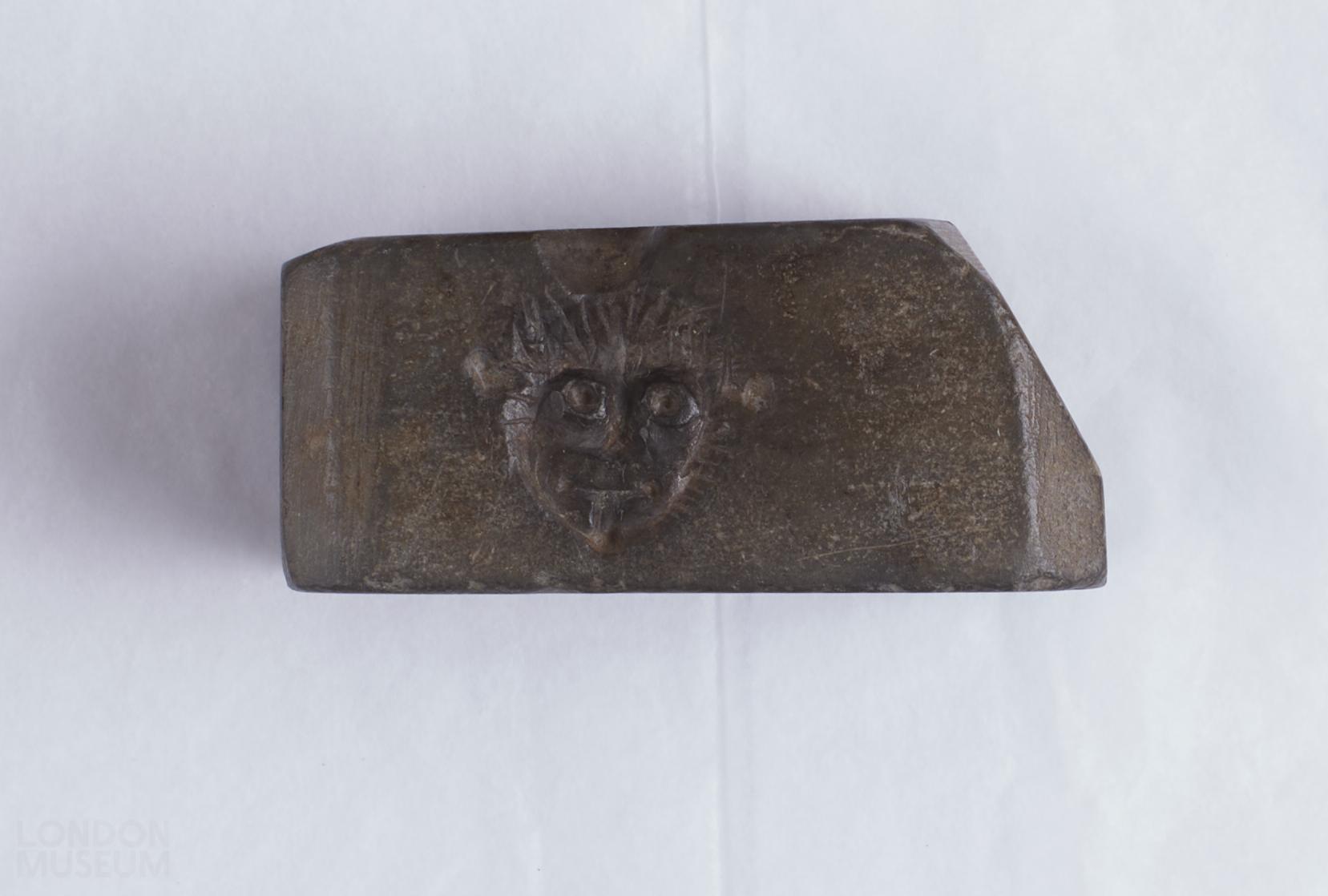 Stone mould used for casting badges. Dated mid-late 15th century.