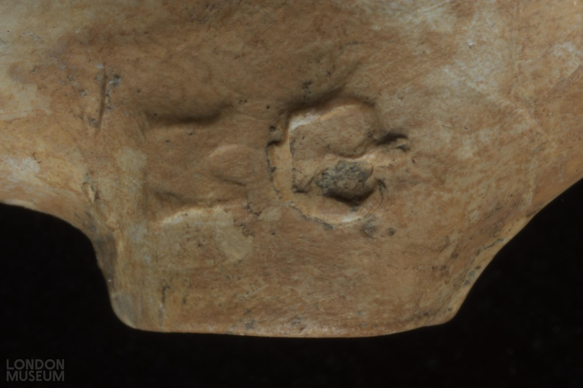 Complete bowl. Moulded marks on sides of heel, in relief: W and crown (left side facing smoker) M and crown (right side). Atkinson and Oswald (1969) type 20