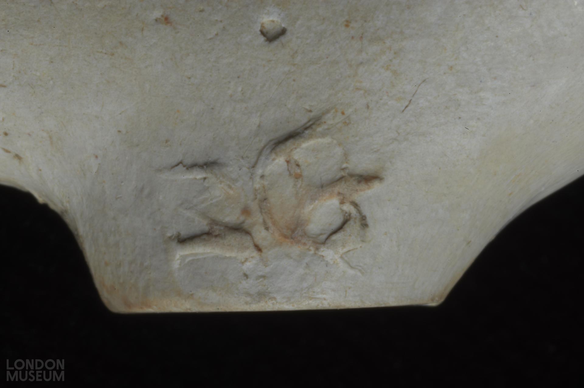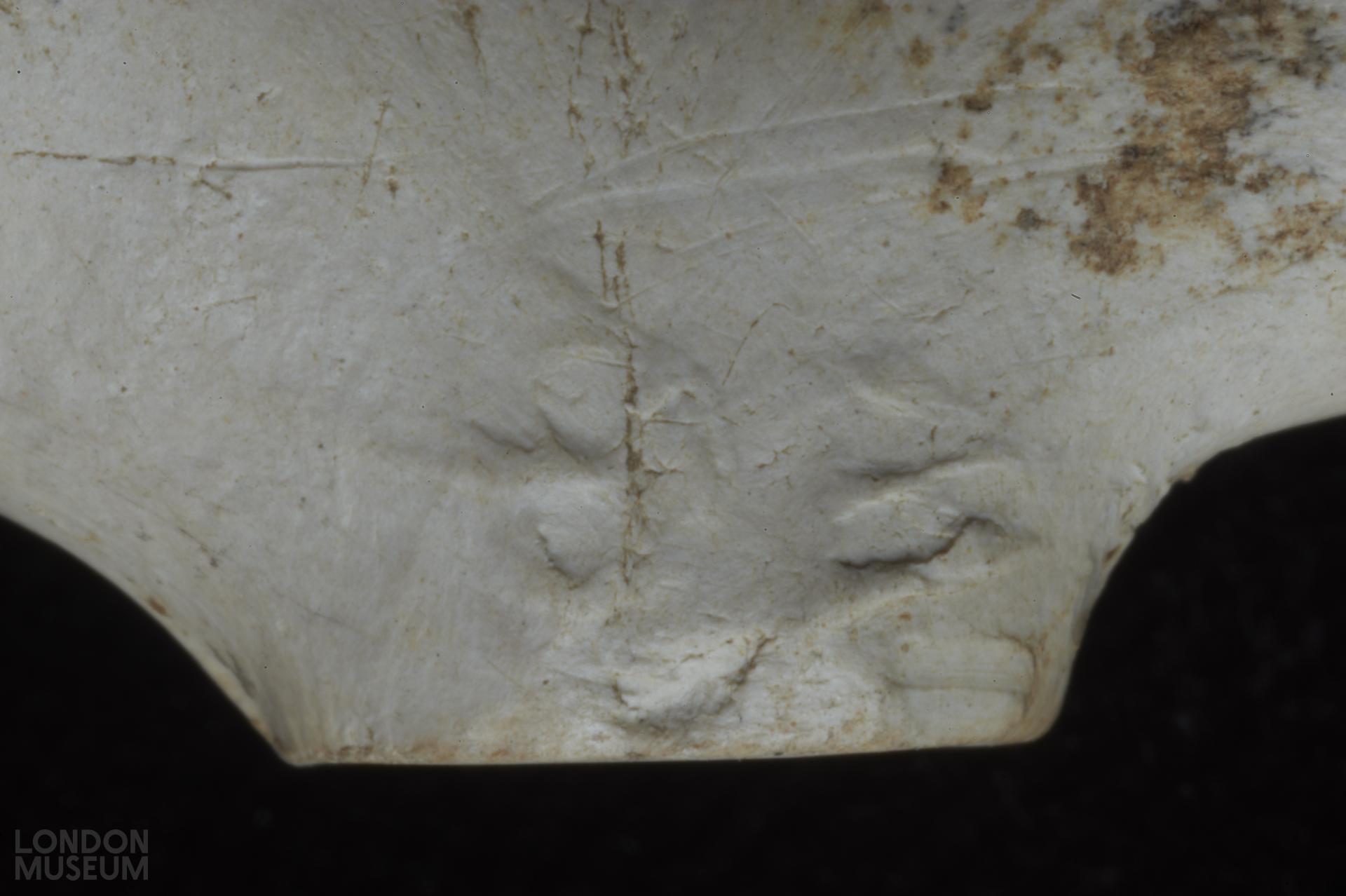 Bowl, incomplete. Moulded marks on sides of heel, in relief: W and crown (left side facing smoker) M and crown (right side). Atkinson and Oswald (1969) type 20