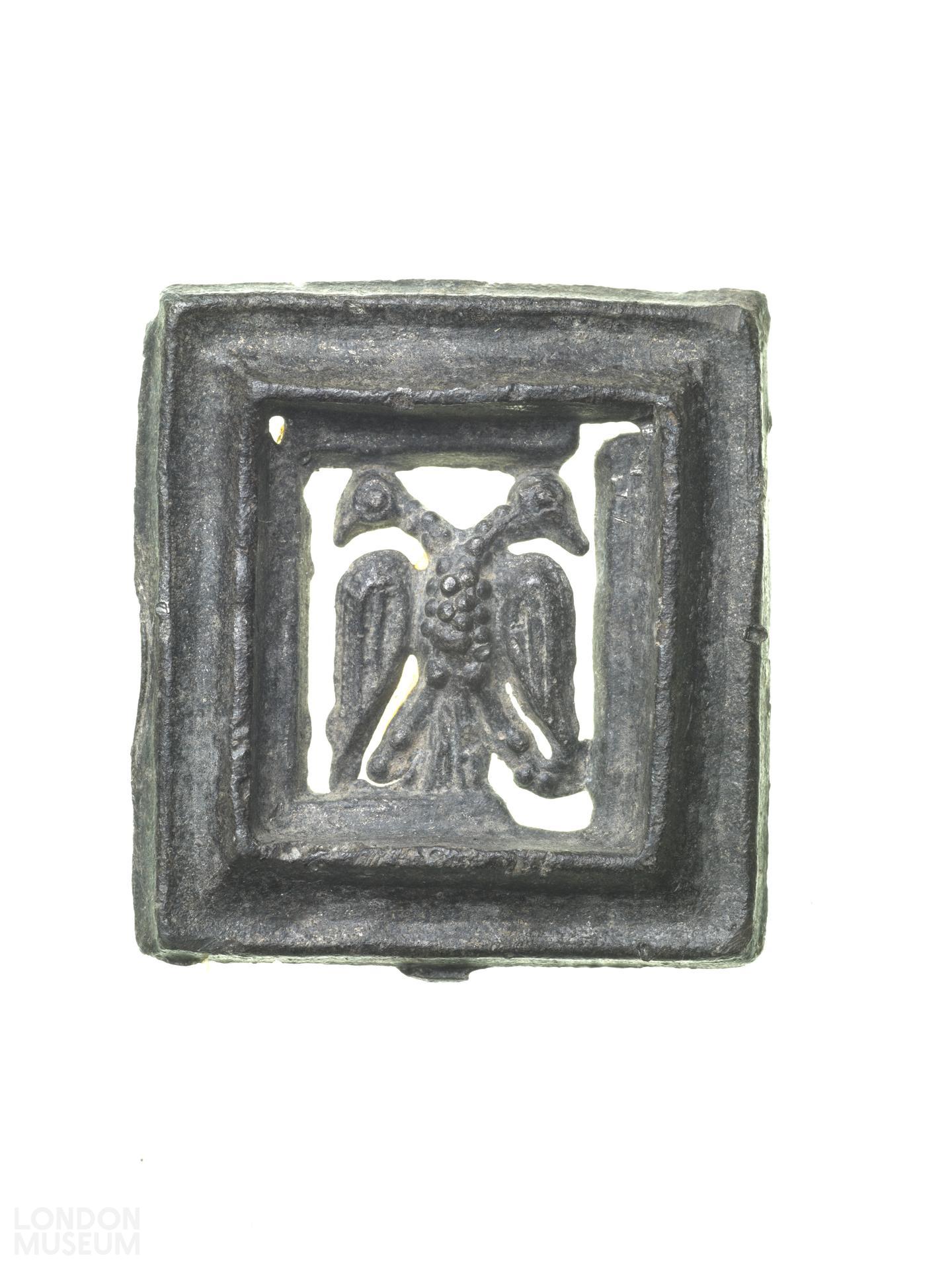 Secular badge in the form of a double-headed eagle set winthin a frame, dated to the 14th or 15th century. Previously tentatively attributed to Richard, King of Romans.
