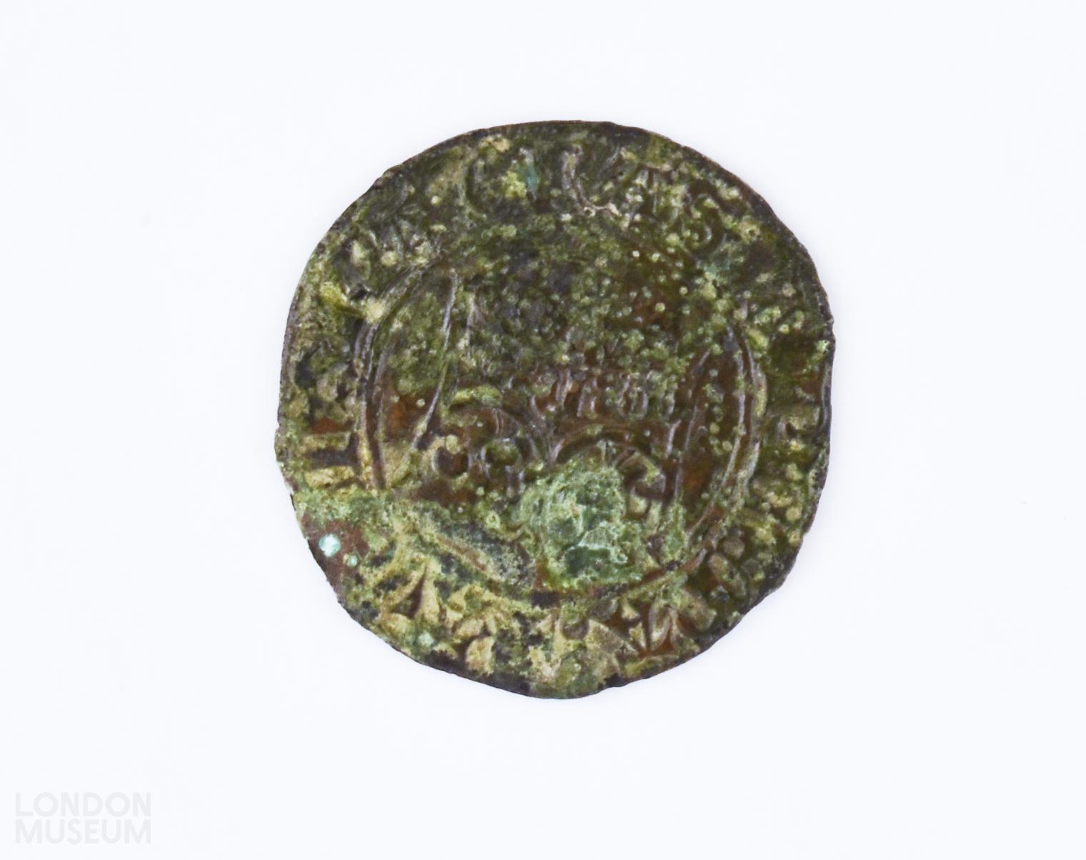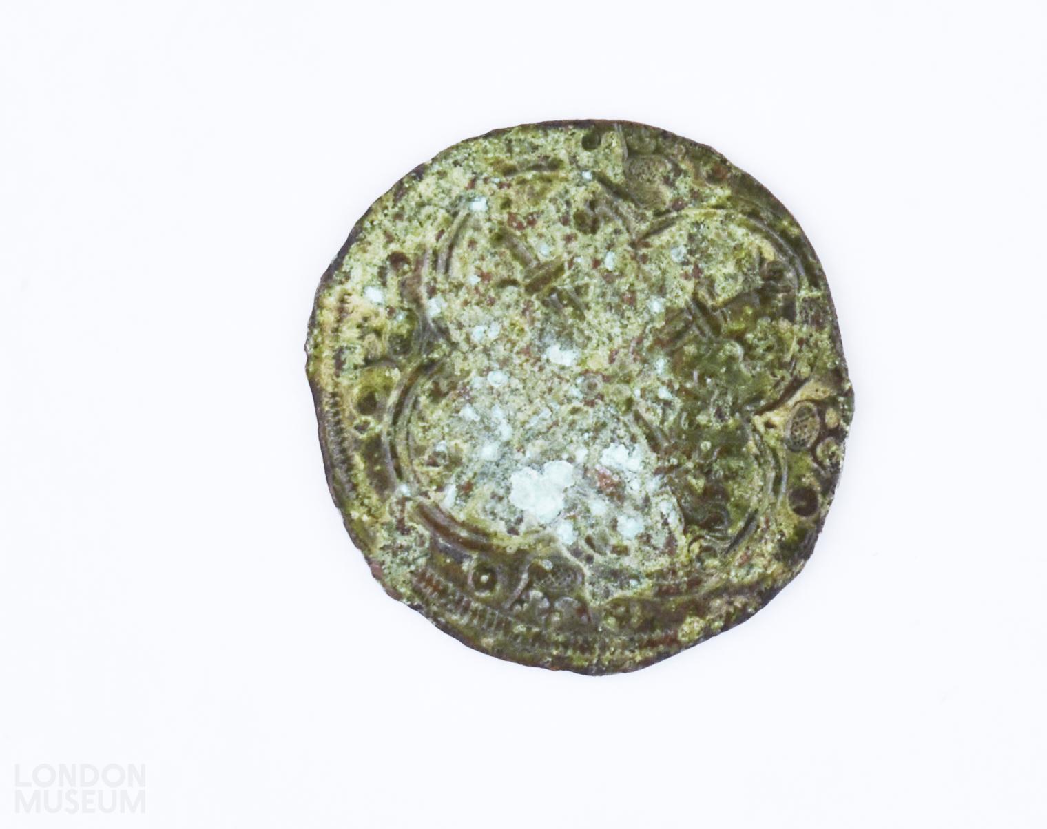 Copper alloy jetton dated c. 1066-1485.