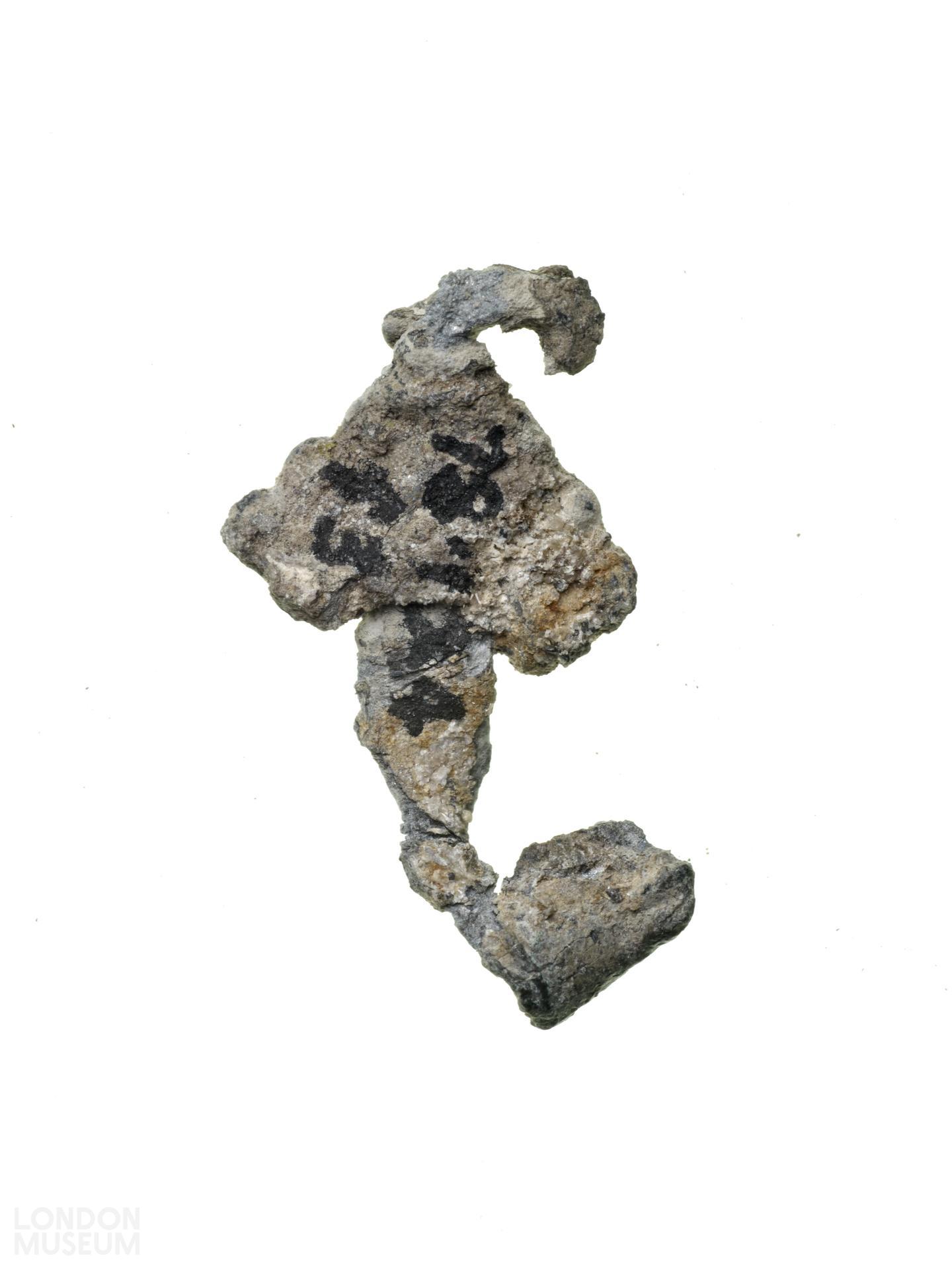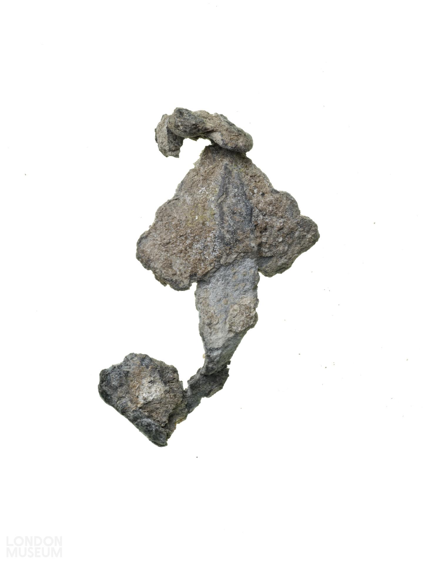 Fragment of badge. Possibly showing the mitred head of St. Thomas Becket.