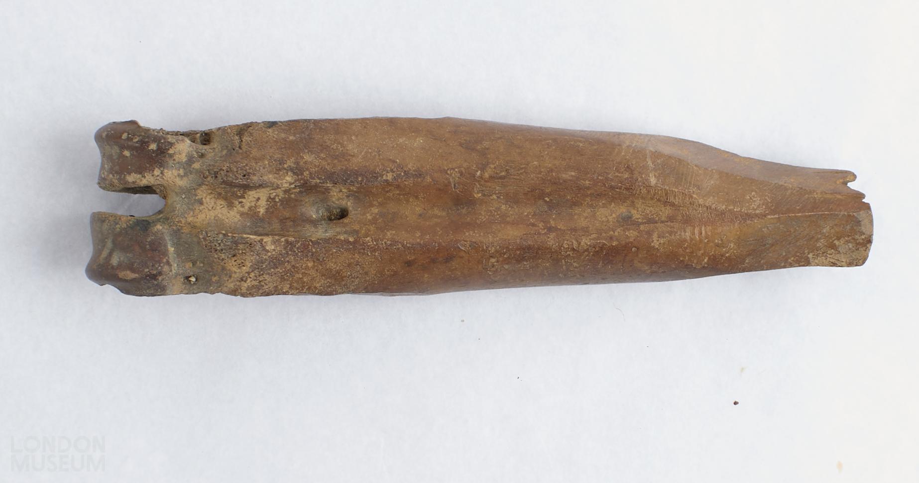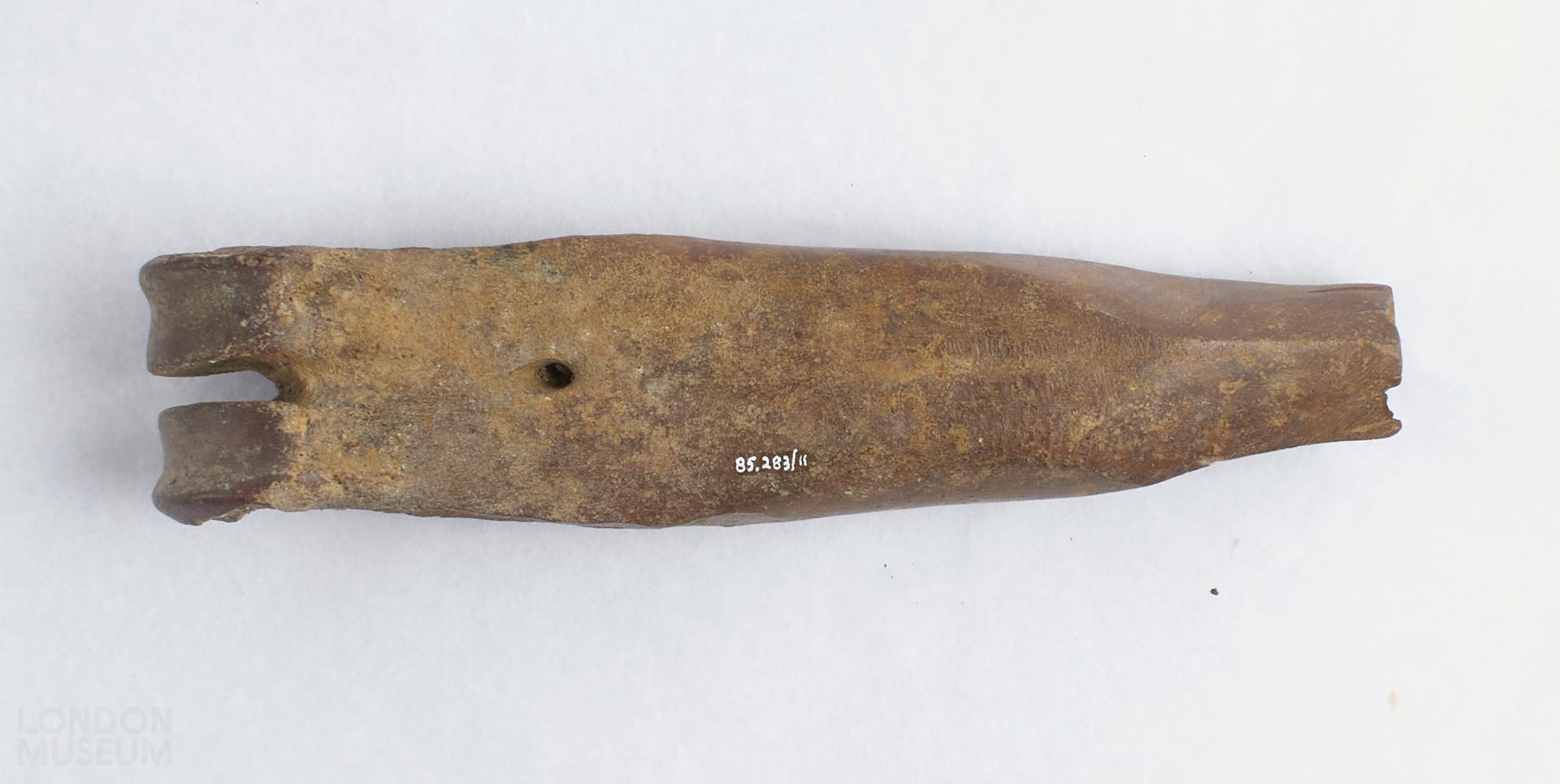 Pinner's bone. Consisting of a shaft with a faceted end with grooves cut into it.