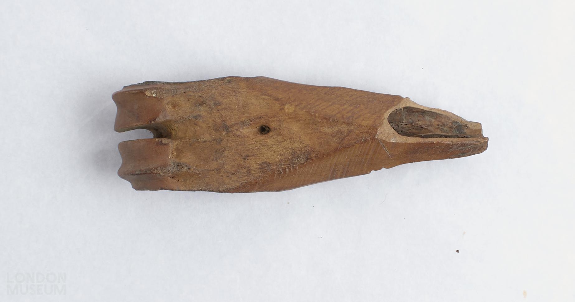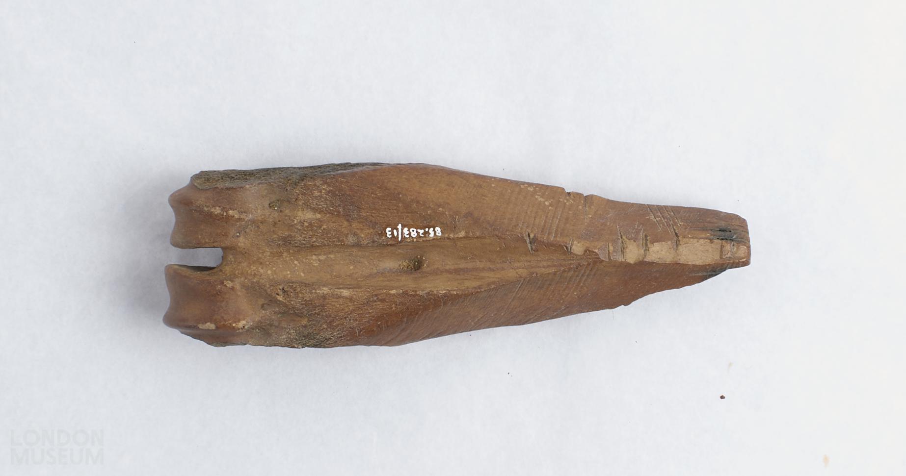 Pinner's bone. Consisting of a faceted shaft with grooves cut into it.