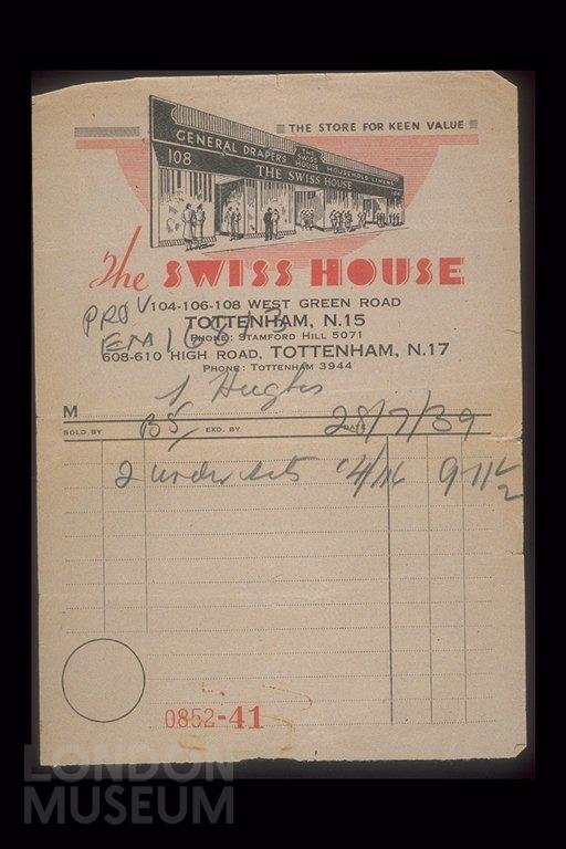 Invoice from The Swiss House, drapers.