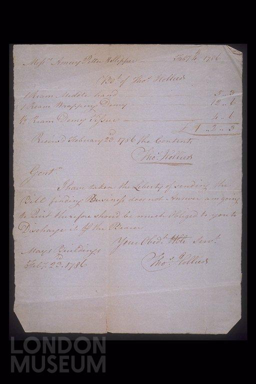 Invoice to Messrs Amery, Pitter and Slipper from Thos Holliers, laceman.