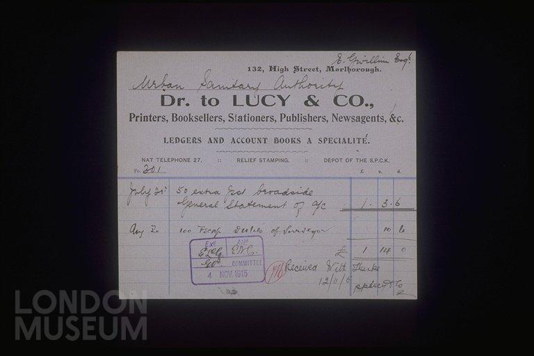 Invoice from Lucy and Co. printers, publishers, and newsagents, etc., to Urban Sanitary Authority.