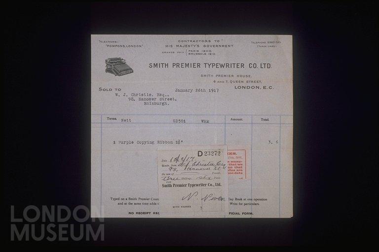 Illustrated invoice from Smith Premier Typewriter Co. Ltd, to W.J. Christie.