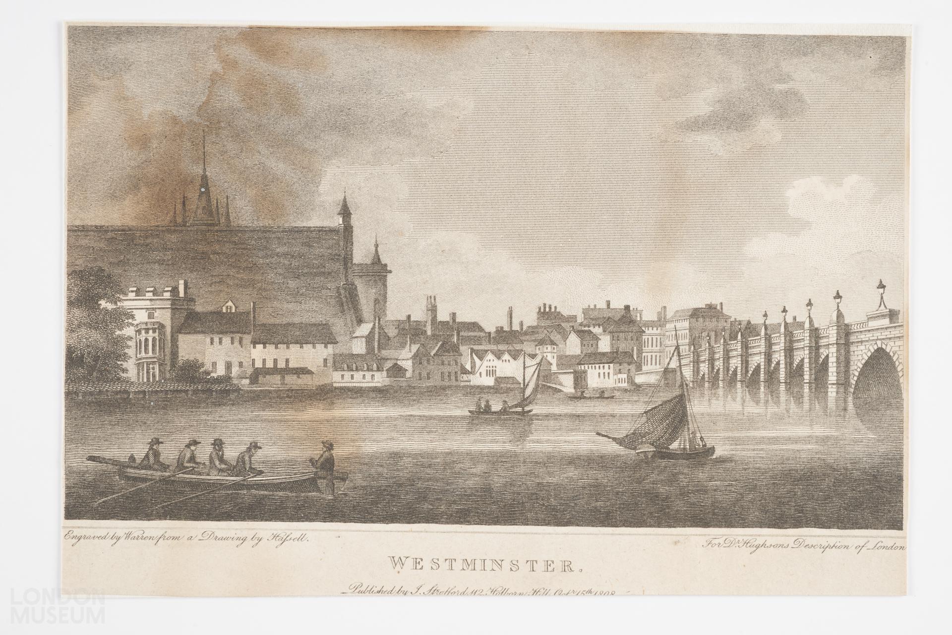 Westminster, 1808. For Dr Hughsons Description of London. View from across the Thames.