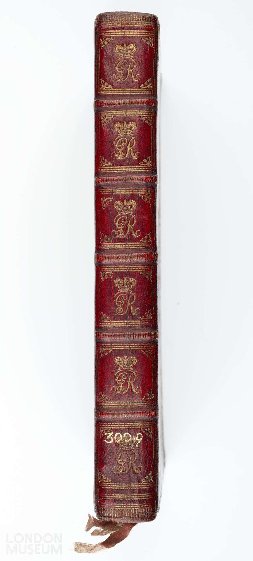Book: The book of common prayer, and administration of the sacraments, and other rites and ceremonies of the church, according to the use of the Church of England: together with the psalter, or Psalms of David, pointed as they are to be sung or said in churches. Oxford, printed at the Clarendon Press, by W. Jackson and A. Hamilton: sold by W. Dawson, London, 1790. Binding has Royal Arms and cypher of King George III (stamps 05 and 30 from British Armorial Bindings).