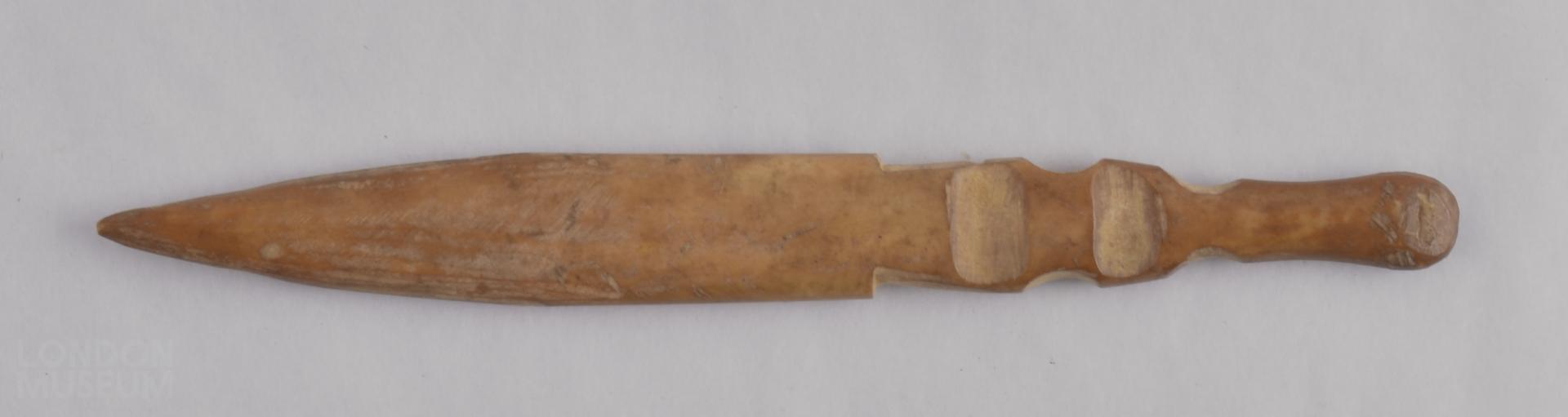 Bone feather curler with two grooves on handle. Bears label with provenance.