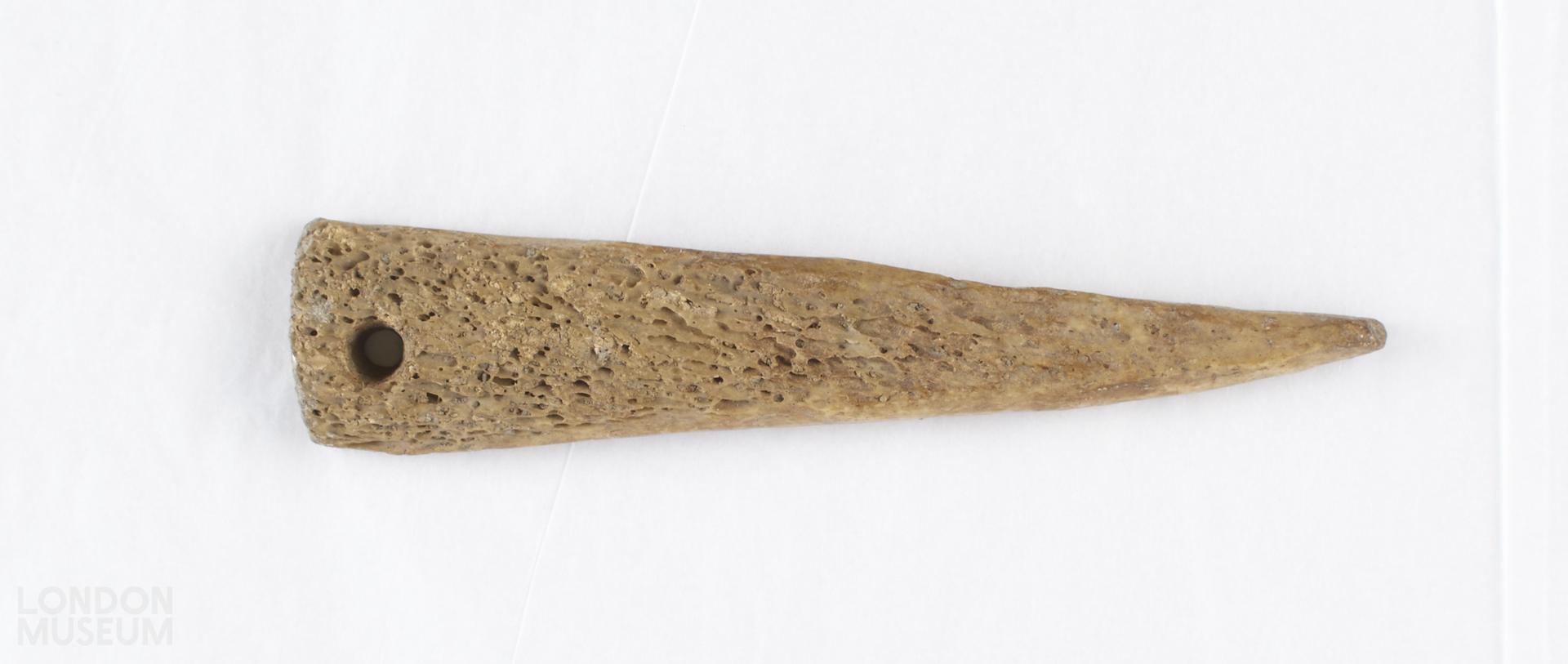 Bone pin, flat and tapering to a point.