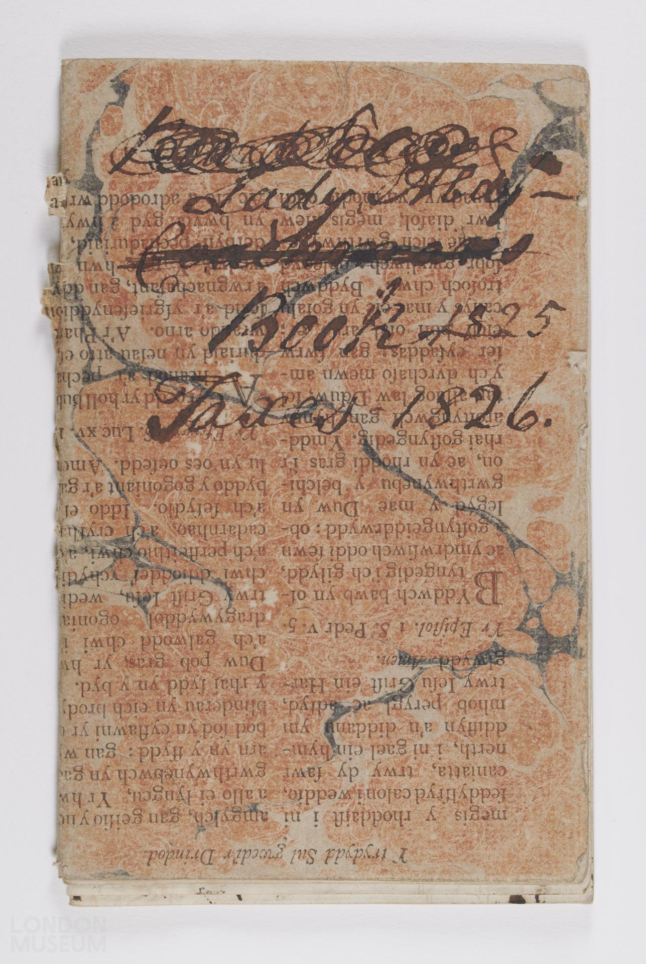 A tax account book referring to taxes paid by Lady Abdy, 1825-1828. Part of a collection of items connected with Lady Abdy, wife of Sir William Abdy, 6th Batallion. With marbled paper covers with printed text on the reverse (as though they have been cut from a book).