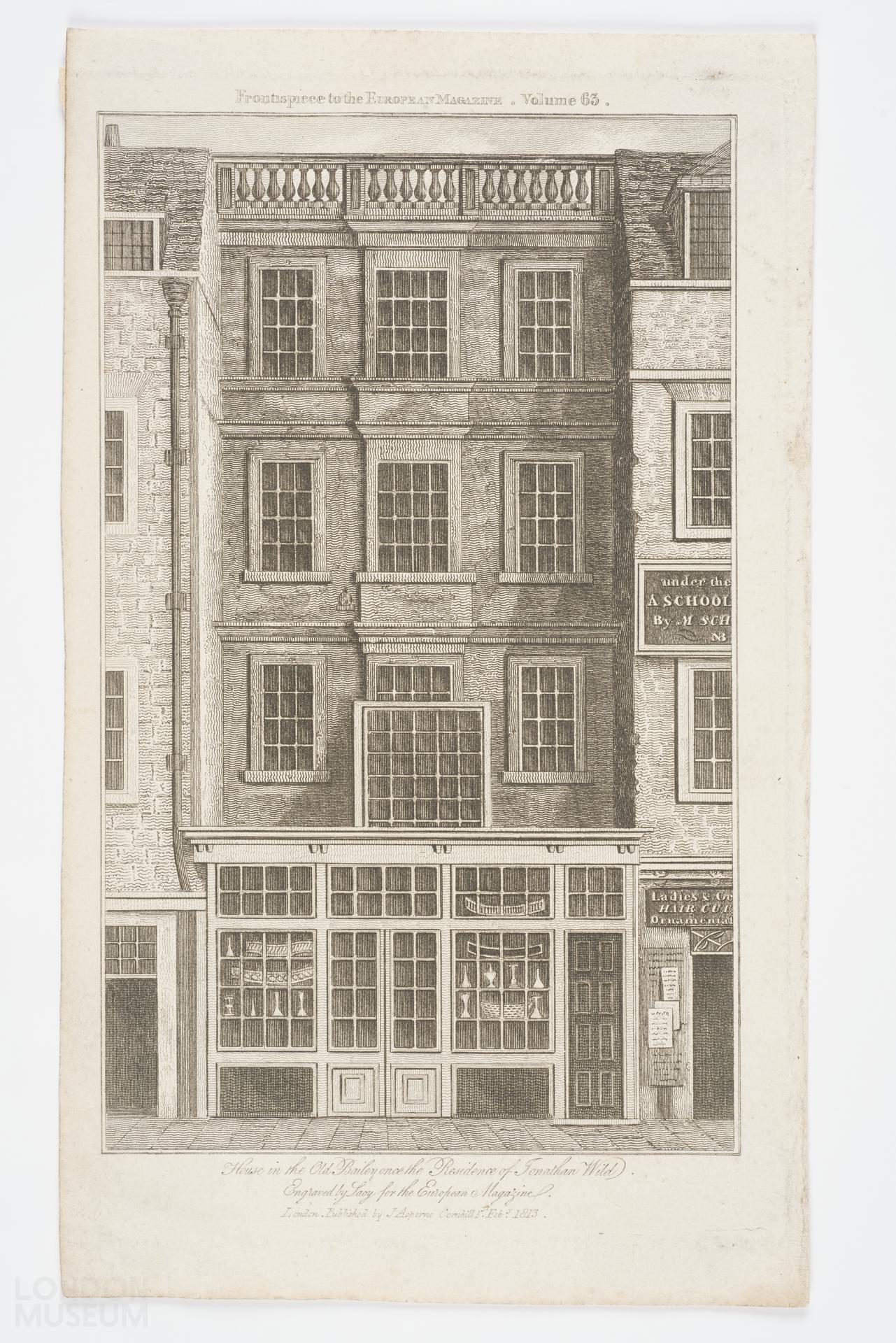 House in the Old Bailey, once the residence of Jonathan Wild - described as "Director of a Corporation of Thieves, and a most famous Receiver. Executed at Tyburn, 24th of May, 1725" - see Newgate Calendar. For the European Magazine.