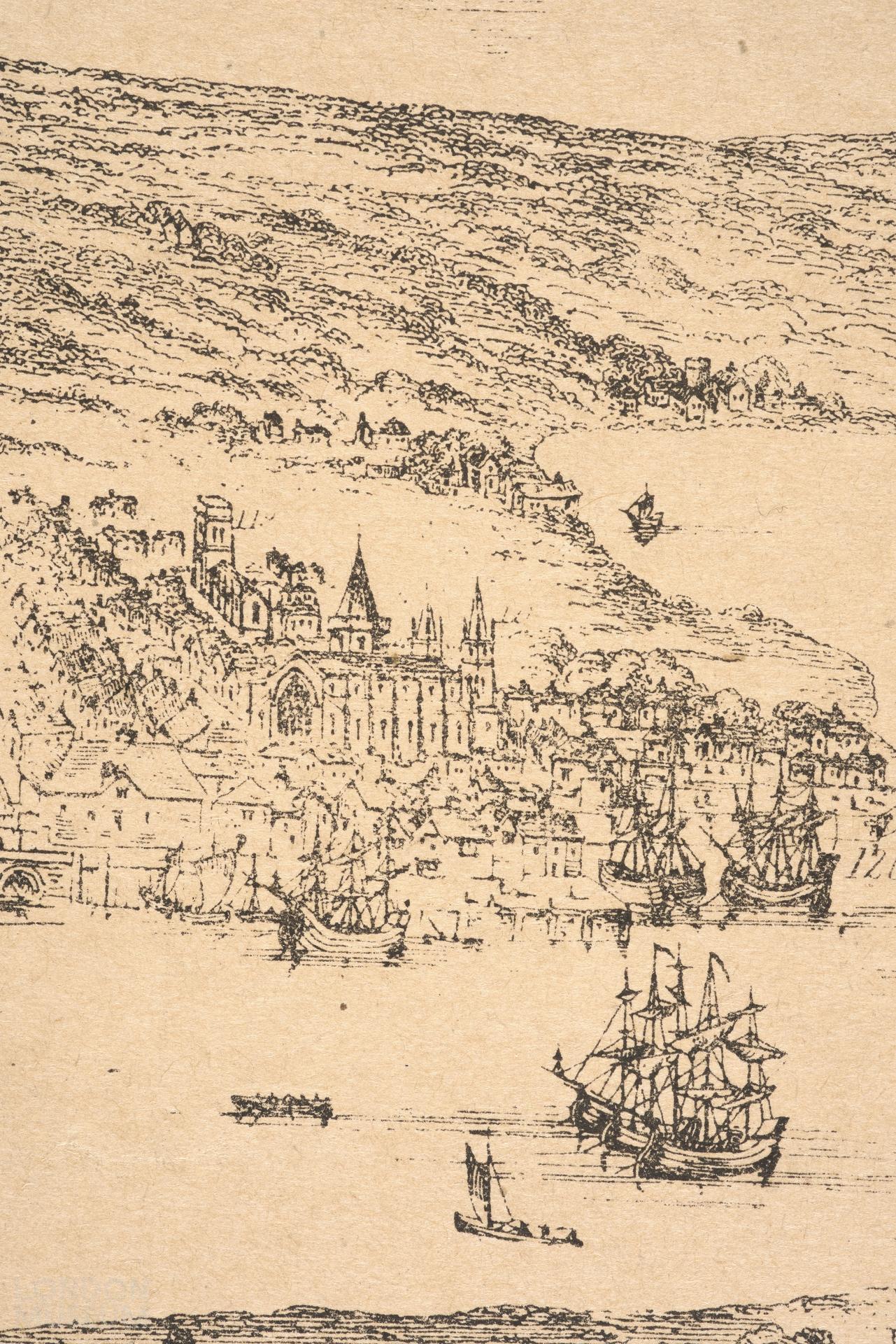 A folded panorama titled ‘Panorama of London, Westminster and Southwark as they appeared A.D. 1543’, with cover title ‘London, Westminster and Southwark in 1543’. The panorama is facsimile from a drawing by Anthony Van Den Wyngaerde, Sutherland Collection, Bodleian Library, Oxford. Signed in pencil at top right corner: N.S. Heald. Belongs to collection ‘Maps of Old London’ edited by G.E. Mitton and published by A. & C. Black at Soho Square, London, W. Priced 1s.