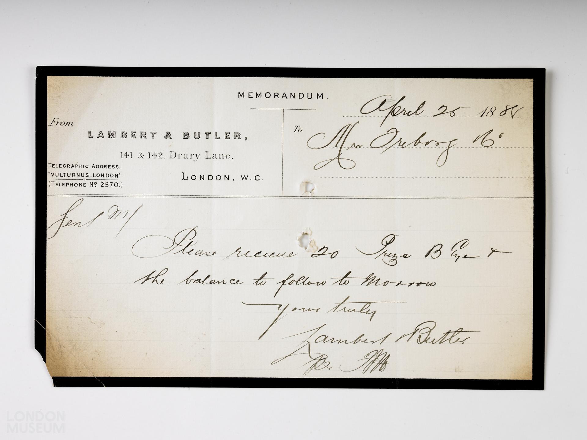 Memorandum issued on 25 April 1888 by Lambert and Butler, manufacturers of tobacco, snuff and cigars.